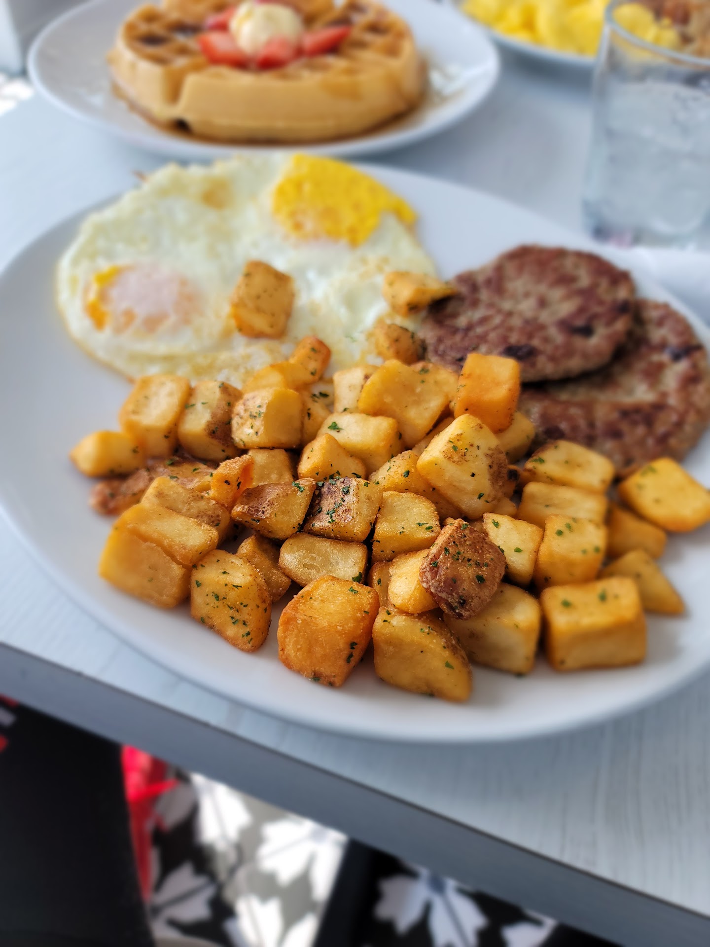 However the experience with the server was strange. She started off nice. She took our order. (But didn’t write it down) Came back a couple mins later to clarify the French toast order…ok no problem. Then she comes back after another few mins to clarify our drink order. Maybe 10 mins pass.. she comes back with the caramel macchiato, but they are iced and we asked for them to be hot. She immediately caught her mistake before we could say anything and takes them back in like a snatching motion. We get our food and the French toast order is wrong 🤣😂but we don’t ask her to take it back bc at this point I’m nervous for her to touch anything else. She becomes very snappy and we were like is everything ok? And she says yeah why wouldn’t it be? We didn’t get a refill on water and we had to ask for napkins..the odds part is we can see her interactions with other customers and she was super polite. So we just asked another server to help us instead and she was nice.