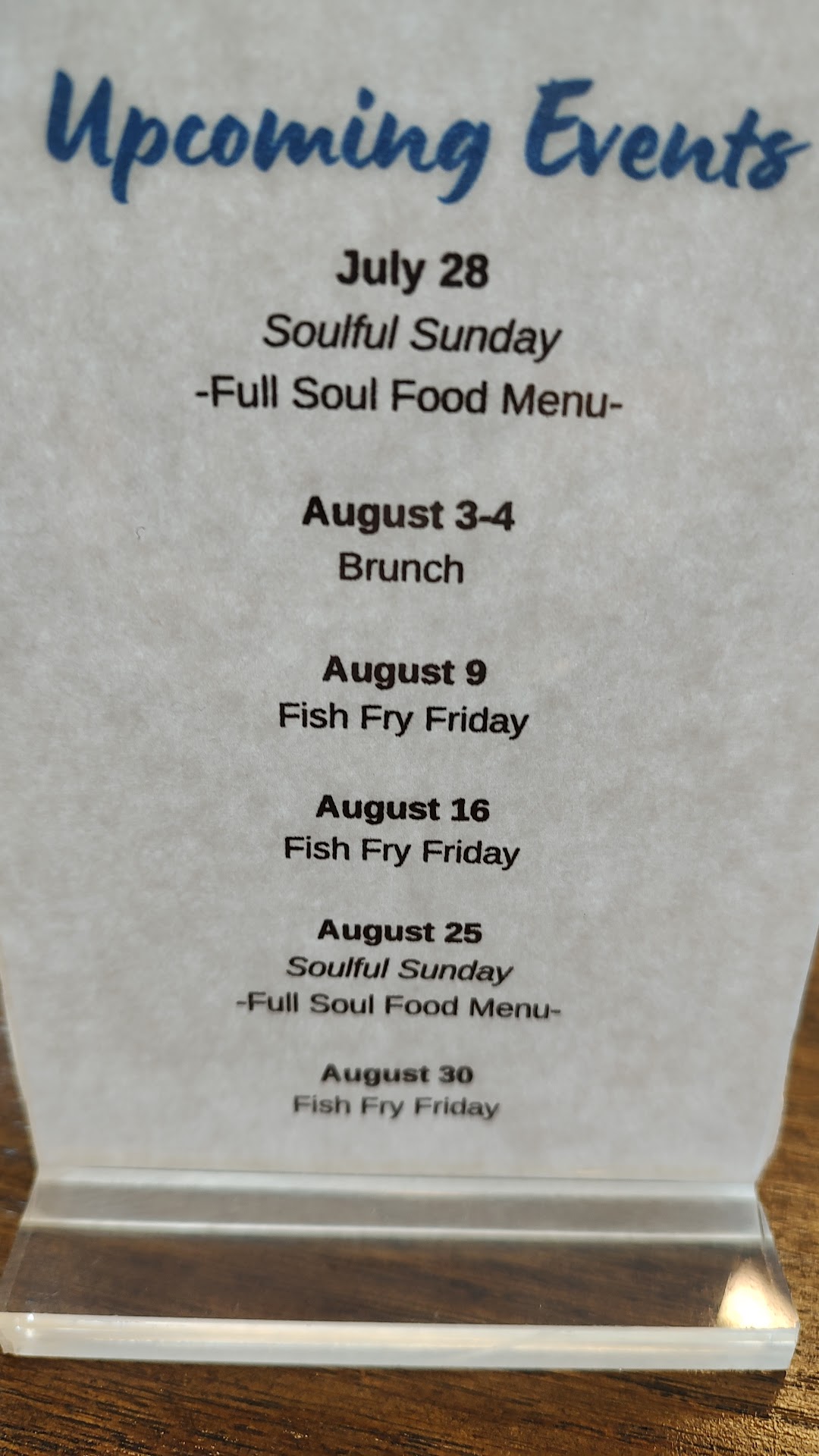 HIGHLY. RECOMMEND. I can't say this strongly enough. I went for the August Friday fish fry and OMG!!! The food! It was delicious and there was a LOT of it! When the waitress first brought out my fish plate, it had three pieces of flounder and I told her I had ordered the flounder and shrimp. She said, "Oh, no. I have to go back and get that. It comes in a separate dish." I was floored. (See photos for prices and photos of food.) I cannot begin to tell you how awesome the fish and shrimp were. The batter for both was light and just crisp enough. Neither were overcooked and were seasoned just right. I ended up taking most of the fish home because I ate all of the shrimp. I believe the tartar sauce was homemade, as well as the coleslaw - both also good. Service was on point and I was checked on regularly. I couldn't have asked for better service. The atmosphere is clean and neat. Very subdued with light music playing in the background. They have two tables that seat six/eight and the rest seat four or can be pushed together. As I was finishing my meal, Chef Q, the owner, came out to speak to the tables. It was a nice touch. And I'll say it again... Whether you come for Soulful Sunday (which is a soul food menu) or their regular brunch menu - you cannot go wrong here. I've heard their cinnamon rolls...