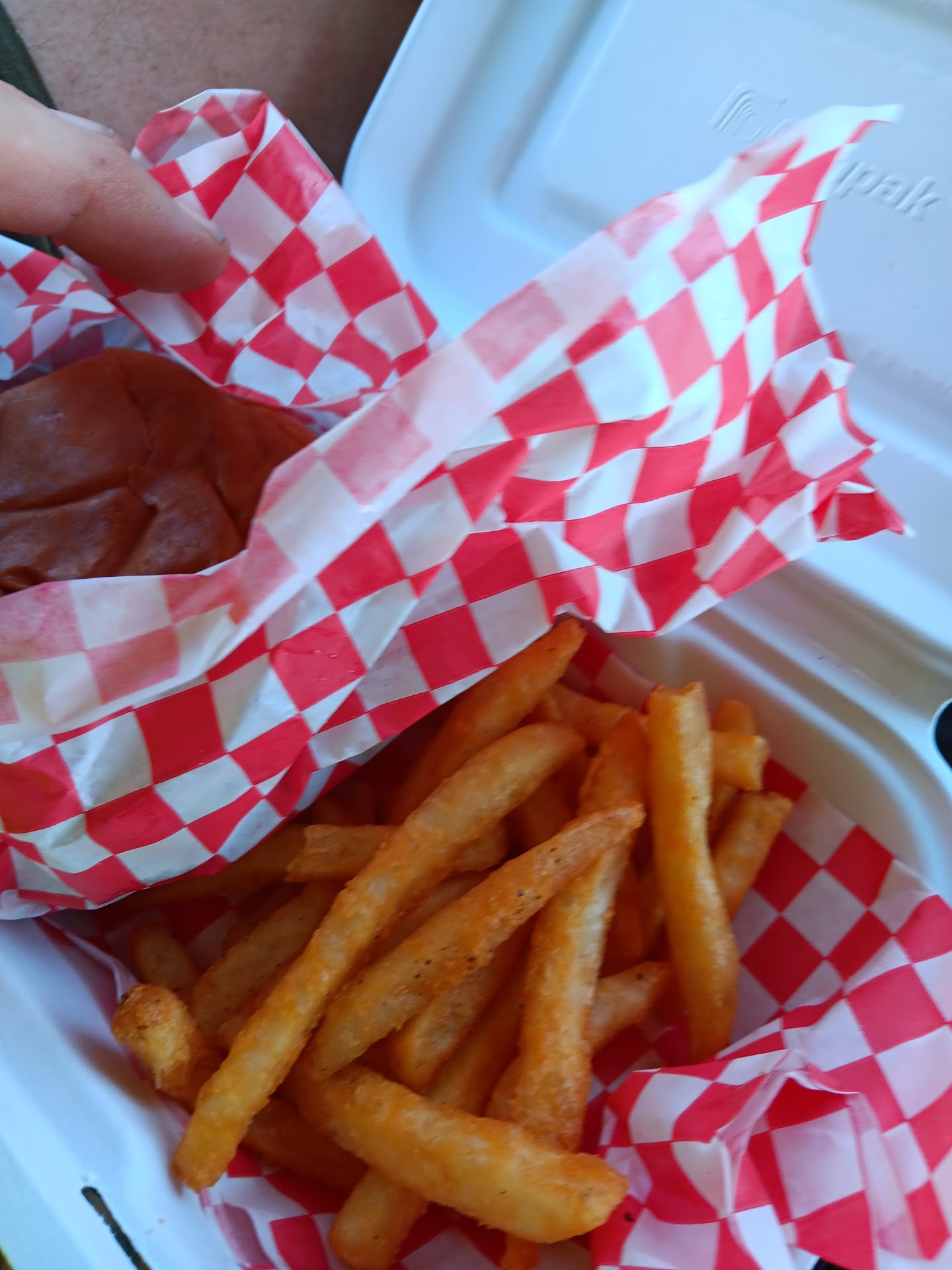 Ok, we're finally sitting down to eat our burgers, after taking off the pickles and such, they are so greasy that the little bottom bun is at this point paper thin, (like a tiny greasy sponge). Fries was not bad but could be fresher. We ate our food but didn't eat it all because it was just such a bad experience.