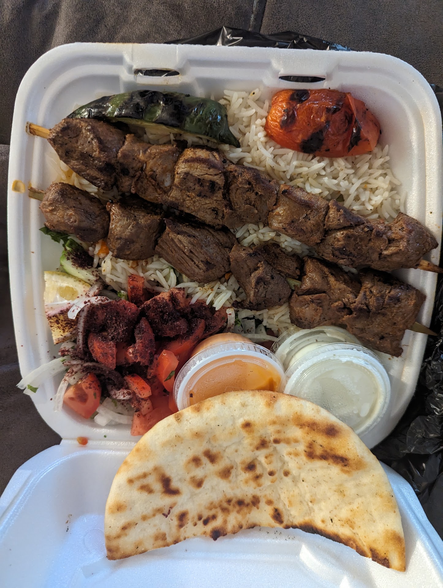We opted for the lamb and chicken kebap platters, and both were excellent. The marinated meat was cooked to perfection, and the accompanying rice, Turkish salad, and even the fries were all fresh and flavorful. The portions were incredibly generous. We also tried the stuffed grape leaves and baklava, and both were delicious additions to our meal.