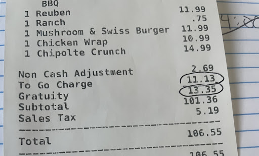Read moreFirst time ordering, called in order,was told to order online, but I didn't want to so they did take my order, picked up order wasn't forewarned about up charges. They charge for their styrofoam to go containers, and charge 15 percent tip.almost 10.00 added to our bill. Fries were cold wet and yucky. Hamburger was ok but nothing fancy, philly beef steak sandwich wasn't bad. Kids chicken strips were thin and tough. When I called to tell them about fries they said we could come back and pick up or forget about it, it's a busy Friday night I was told (boy do I feel less than special) Bad impression for first time, won't be doing it again...