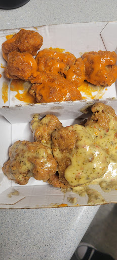 We arrived with a group of 6 on a Thursday night. There was a 20-25 minute wait, but we decided to stick it out. The staff was friendly enough. After we got seated our waitress took drink orders pretty quickly. It turns out that thursday is boneless wings day. Boneless wings are 65 cents each..... But dipping sauce (ranch or blue cheese) costs an extra 60 cents each, which is pretty lame in my opinion! I decided to pick up 15 wings, which was about right for a hungry guy. 5 each of Parmesan garlic, spicy garlic, and hot BBQ. The Parmesan garlic was very good! The sauce is very creamy with the right amount of garlic in it. It was the favorite of the entire table. I was a bit disappointed by the spicy garlic. The flavor was ok at best....I don't think I'd ever get it again. The hot barbecue was good if you like stuff that's just a little bit spicy.