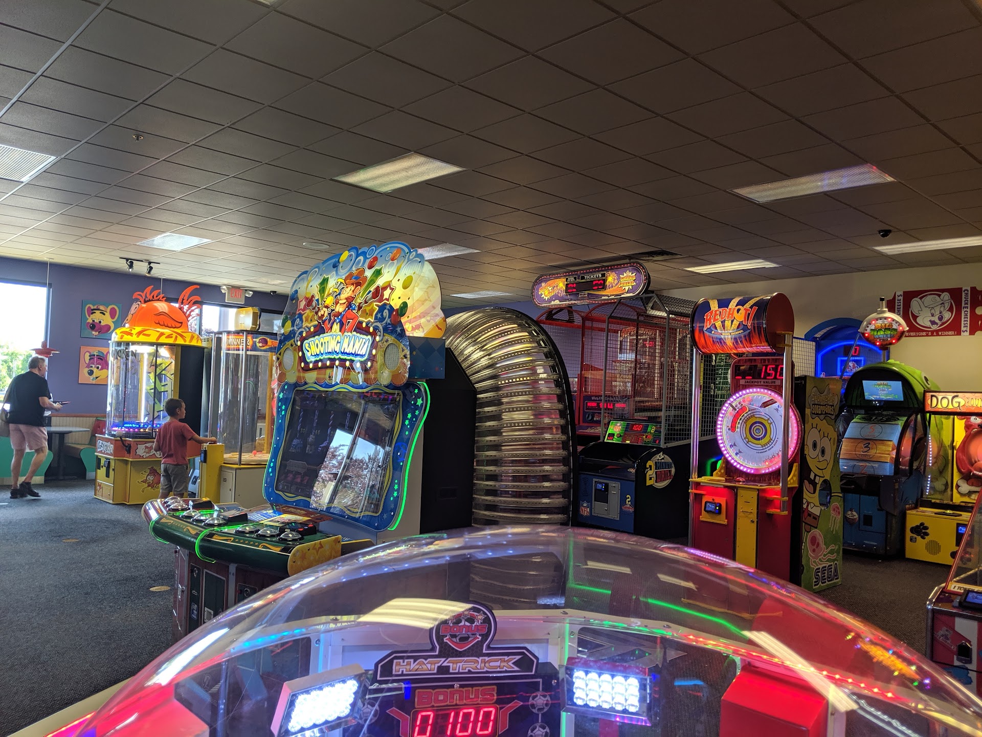 Games: due to size choices were limited. Only 1 racing game, which had 1 screen down. Other malfunctions, about a total of 7, happened while I was there; a bit excessive for the location size.