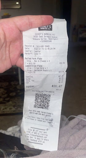 Read moreAs someone who lived in Dallas for quite a few years, I've found it difficult to find GOOD, authentic barbecue here in the Spokane area. I was happy to find Dickey's here in the area, and tried the north side location. Sad and disappointed. NOT what I had come to know and love living in Dallas. Tried the valley location after I was able to get over the disappointment of the north location. WINNER WINNER, BBQ CHICKEN DINNER! THAT'S the Dickey's I know and love! Totally worth the price and the minor wait time to get QUALITY barbecue. Keep it up.