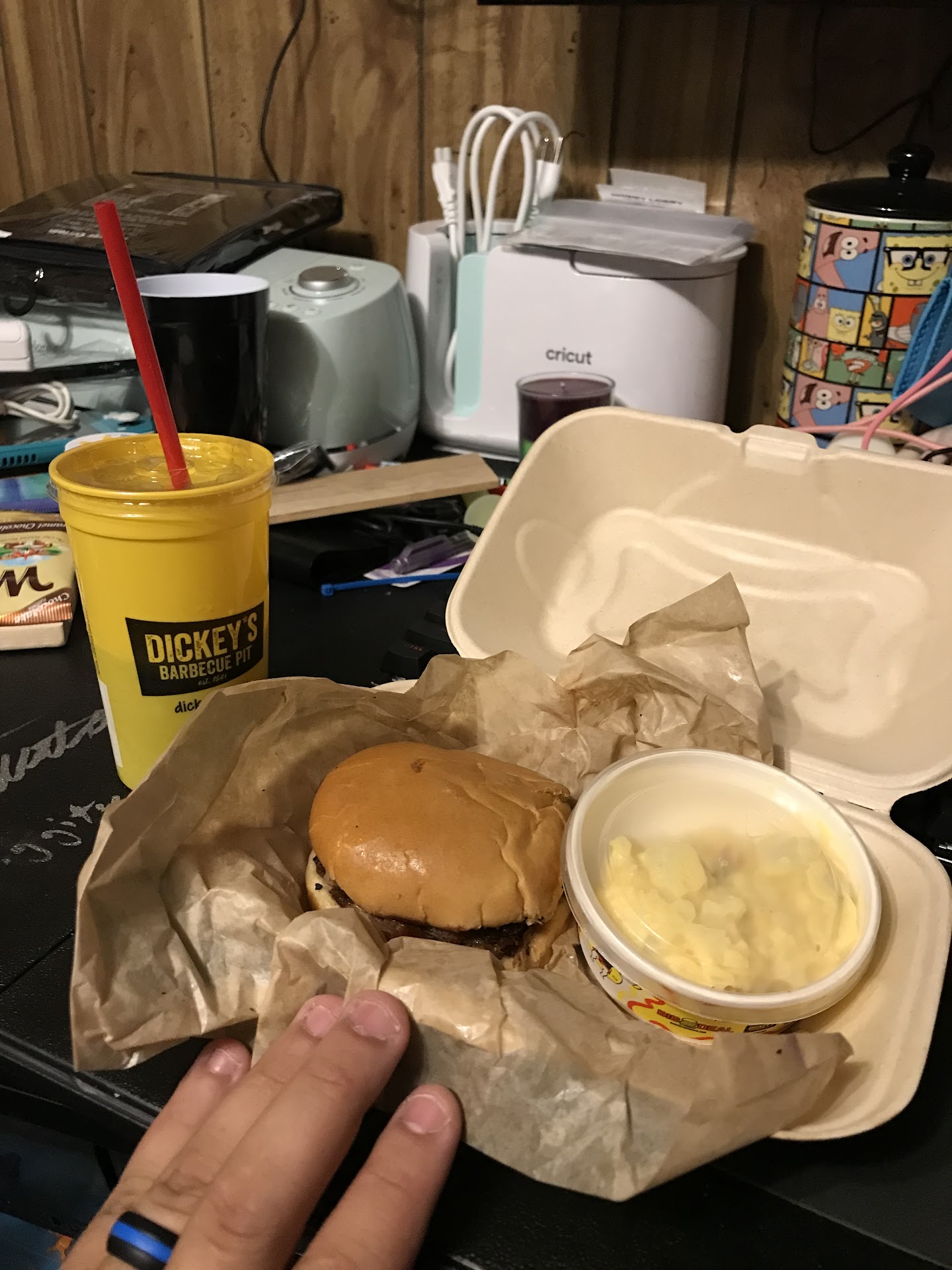 So after doing some adulting and needing lunch, I saw dickey and flipped a u turn to go grab lunch there since the food use to be amazing and the misses had never had it and I’ve been telling her she should try it. Pulled up to the drive thru to order and sat there for a while and didn’t hear anyone on the speaker so we pulled forward and went in. The store was dead. Not a soul in sight. After standing at the counter for what felt like a eternity someone finally appeared from the back. Awesome right, nope. They were out of almost everything would of been nice to be warned so I could of got lunch from someplace else, but at last hindsight is 20/20. Couldn’t get the pork so I went with the brisket meal. I wanted a sandwich fries and drink, well they were out of fries also so had to settle for potato salad. The whole time I was ordering the employee was rude and not paying any attention, I should of taken that as a sign to go somewhere else but I was already there so I placed the order. It Came out to just shy of 18$ after tax, which normally would fine for a bbq place lunch, keyword normally (see pic) the amount of food for the price is horrible. Well the misses and I waited for them to make the food which took over 15 minutes to make a single sandwich. They employee came out and brought the sandwich and potato salad and said he would be back with the drink cup. He instead returns with 2 children size cups and says they’re also out of stock of cups. At this point I’m fairly heated what was supposed to be a quick lunch stop had turned into a 40 minute ordeal. So we go to get the drinks and leave. Nope out of stock again only beverage option they had was lemonade and coke. Honestly one of the worst restaurant experiences I’ve ever had and we eat out a few times a week. 0/10 would never recommend dickeys to anyone anymore, should of went...