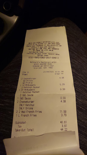 Read moreHonestly, I was only brought half of my order. When I called for the lady who brought out my order as she was only steps away from me, she ignored me and continue walking. Due to my fiance having gone to the restroom, I couldn't go to the fountain drinks because I felt as though I shouldn't leave the food unattended. So there I was. Sitting alone in a McDonald's, with a pregnant belly that was unfortunately large enough for me to resemble Shamoo, with a large empty cup when I was thirsty enough to drink water from Mexico.... trying to figure out if leaving for a moment was acceptable. Why? Because these are the things I worry about. I haven't the slightest idea as to why, but nevertheless this was the debacle I found myself in.
