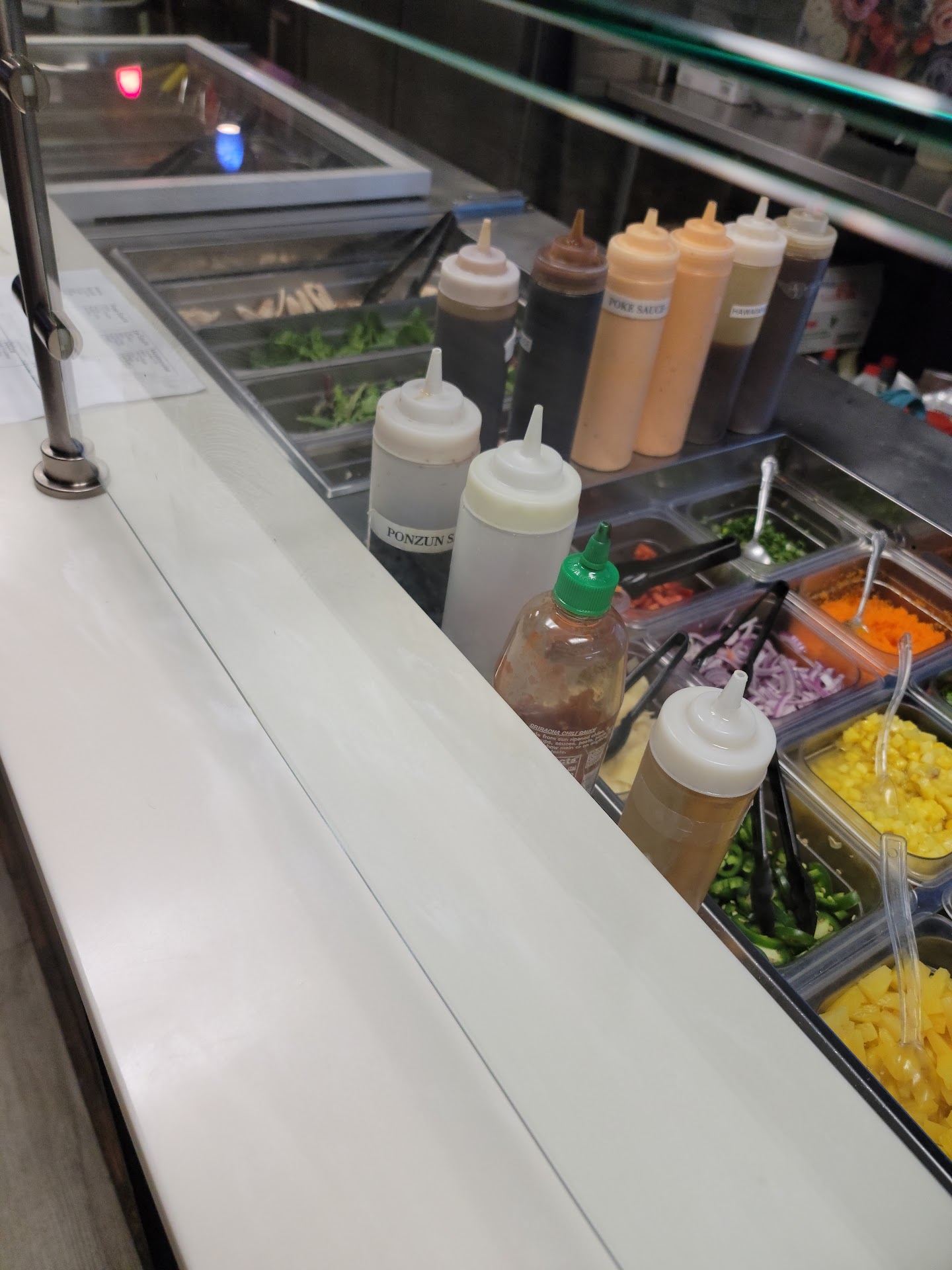Read moreThe ice cream and poke taste yummy. The place is a mess, though. Sometimes the kids working there leave the poke fridge lid open for a long time and walk away. This lack of protocol, organization, and general cleanliness concerns me. This place is not for the folk with OCD! I have been here three times in the last month. It was always yummy and the poke never made me sick, despite the poke fridge being opened for what felt like too long. But, I won’t go back because it’s just a mess. Also, it’s unlikely the youths working here could give fewer “cares” about me as a customer. They aren’t busy cleaning or working when not immediately serving a customer. They never cheerfully welcome anyone. When I asked about all the stacks of supplies (which just seems unsanitary) they expressed that no one knew where to put it. It’s inexplicable as it appears like a small child could be crushed of one of the towers of bowls or forks came tumbling into the walkway.