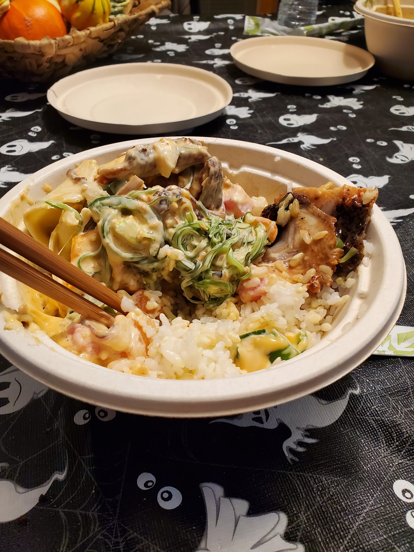 Delicious! The Ahi and salmon are always very fresh. I love all the ingredient selections. The sauces are delicious. Excellent quality & big portions for a fair price. I love that you can substitute fresh greens instead of rice!