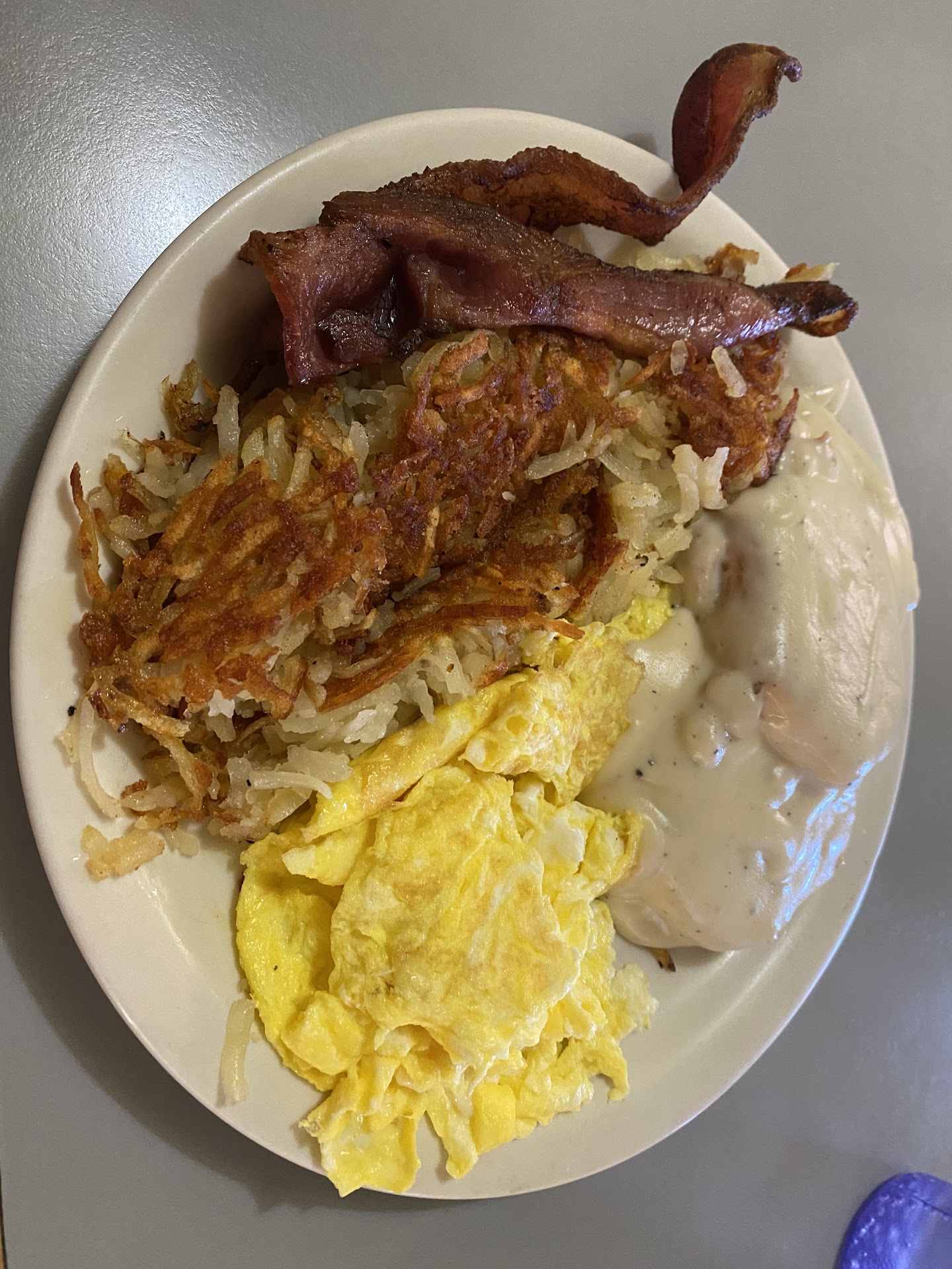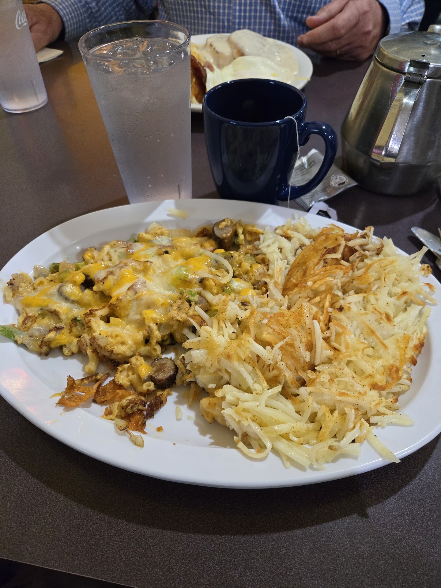 Portions here are generous, and the food doesn’t disappoint. I ordered Terry’s Scramble, and it was spot on—perfectly cooked eggs mixed with flavorful ingredients, covered in melted cheese, and served with crispy hash browns. Definitely hit the spot.