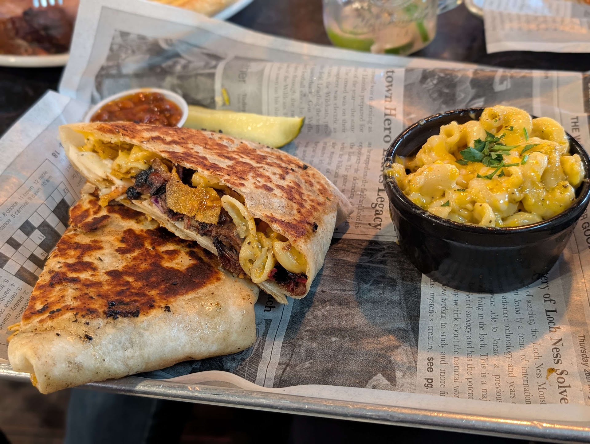 Read moreNot sure if they were having a very off night tonight or if this is normal for this place but our experience tonight truly sucked. When we walked in (2 of us) we were told to find a table. Luckily one was open so we sat right down. Not sure if the owners purposefully understaffed or what but pretty sure there was 1 server and 1 bartender for a Saturday night. As such, we didn't get asked about drinks until we had been there for 20 minutes. We did get menus quickly and ordered mozzarella logs, and bbq burnt ends as appetizers and ordered our entrees at the same time. They were out of brisket which was of course what I had come in for. We instead ordered a French dip and the corned beef crunchwrap. It looks 40 minutes for the appetizers to be delivered. After the appetizers were delivered we waited 40 more minutes before asking the bartender to check to see if they had started our food and to cancel it if not since we had been sitting there waiting for food for an hour and twenty minutes at that point. The bartender came back with the check and said they were just getting ready to start our food so she canceled the dip and crunchwrap and brought our tab. Management really needs to step up and not let their staff drown if it takes 80 minutes to get handheld food started. Whether it is the kitchen needing help or service staff needing help, this was asinine for your staff to be...