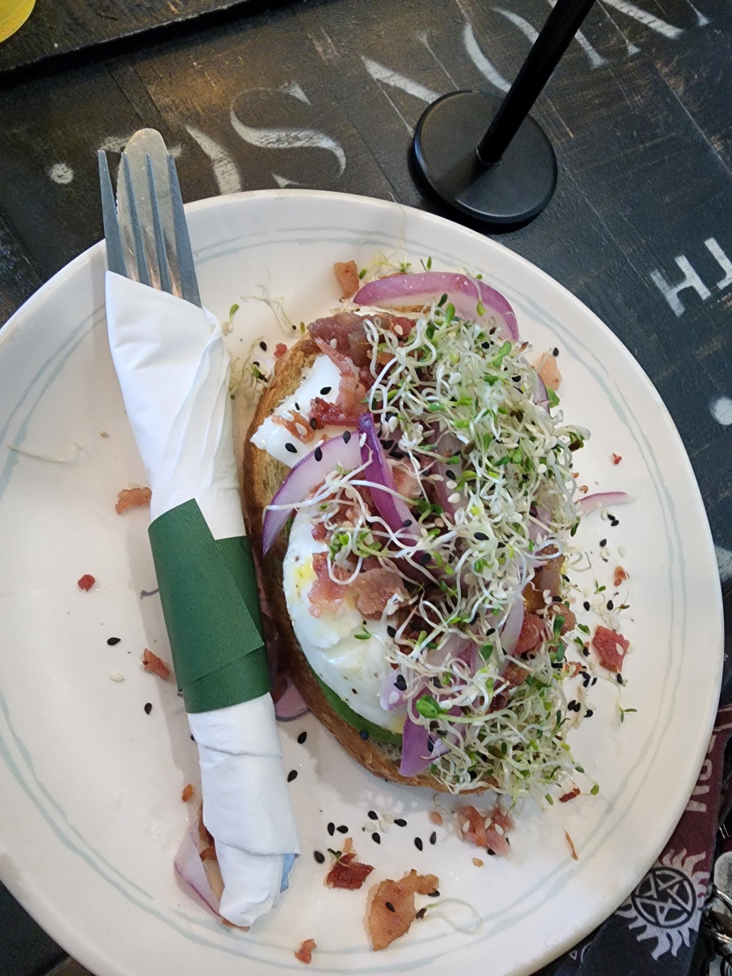 Read moreDecided on this little place to meet up with a friend to have coffee and chat. Arrived around 11am and will say parking was very difficult, and the place was very busy, but we still managed to find ourselves a little spot to sit down and quietly enjoy ourselves. They did seem to be abit on the more expensive side of things but everything was very good. We both got the electric daisy lotus with the Szechuan button flower that you chew thoroughly up and eat before drinking your beverage. The flower causes an electric and bitter type of sensation in your mouth, almost like static and or a 9 volt battery and then once it settles you start salivating a lot, when you drink your beverage it changes and enhances the flavors and then when you drink your beverage makes your entire mouth feel numb as well enhance the overall experience. Its a really fun and interesting twist and im really excited to see locations using these for more then just alcoholic drinks!! I also got the avacado toast with egg bacon sprouts salt and pepper and it was really really good.very generous portions and quiet tasty. I would come back for the drink alone but wouldn't mind sitting down inside again to enjoy the...