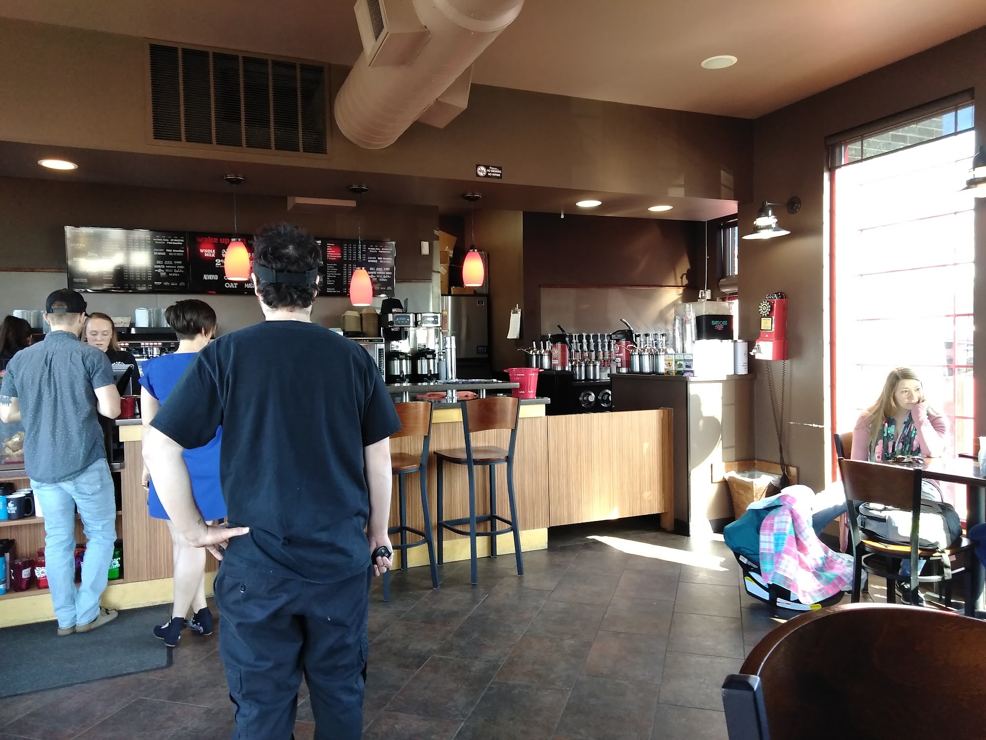 This place is an interesting concept as a whole, we loved the different options but the service and quality are lacking. We were on way through to Seattle after a long drive from Wisconsin. Suffice it to say that coffee was a necessity and we wanted more than the average Starbucks experience. As a previous coffee shop manager my advice is to service customers based on arrival; especially drive threw. Managers or shift leads should have breaks pre-planned and adhered to as much as possible so your third barista isn't going on break with a full lobby and cars in both drive threws. I understand delays but we waited almost 10 minutes behind someone and then another 10 before we even ordered. A very polite and apologetic girl took the order for the first drink and then promptly walked away as I started asking for our second beverage. She comes back and asks if we want one or two shots in our 24 ounce drinks. That seems a bit on the cheap side for espresso, how many shots do you put in your 16 oz drinks, a half of one? 16 oz = 1 shot and you add an additional for each size increase.