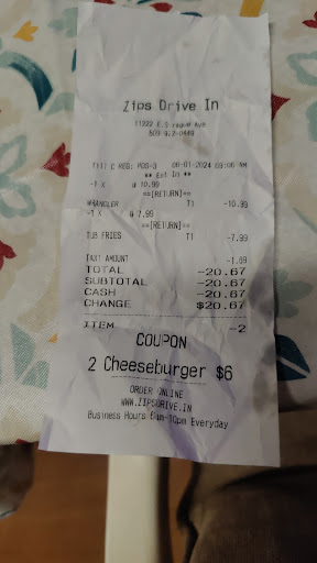 Read moreI went thru the drive thru on February 2nd at 8pm. I ordered clearly a papa Joe loaded with grilled onions, 2 corn dogs extra crispy, and a tub of fries. The lady asked me to repeat my order again and I took my time saying it to make sure she got it right. And I want to add the fact that everyone working is required to also have a headset on so they can drop the food as it is ordered. I know that because I used to work there. It also took them several minutes to greet me and take my order. I waited behind two cars to get there food and I paid for my food at 8:14pm and I realized on my receipt that it was not what I ordered but instead a tub of fries, a regular tater tot/jojo, and a papa joe. I waited 25 min until my food was ready and in that time there accrued 3 people in line after me and one of those people had left because of the wait time. When she presented my food she said it was a papa Joe, a tub of fries, and a tub of jojos. Which isn’t even what was on the receipt and I explained to her that’s not what I ordered. She put the food on the counter and re asked for my order which I said a papa Joe loaded with grilled onions, 2 corn dogs extra crispy, and a tub of fries. She read it back to me and as she was about to walk back to give the cooks the order I said wait a second did you just say Jo joes again? She did fix my order but the corn dogs were not extra crispy because they came to me to soon. I know it’s hard to get good workers but there was 3 people in the grill/ fryer pit and one guy refilling the coolers. I really hope zips can get a handle of this and that the GM Mike can train these people as seriously as he has trained me...