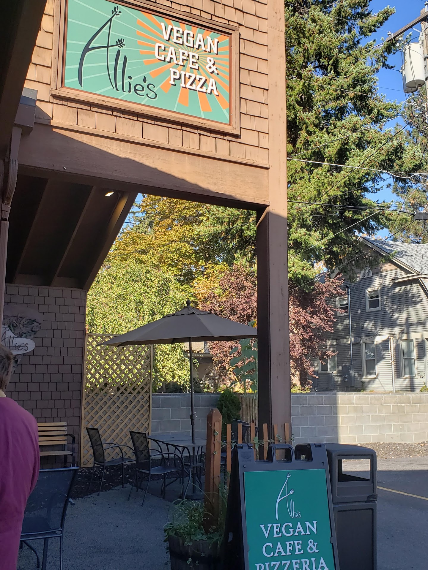 Original: We came here as a suggestion from a friend, the food was amazing considering my husband and I aren't vegan. I had the "chicken" and waffles with the peanut butter chocolate donut and my husband had the breakfast burrito and the cinnamon roll. We were both full after finishing the main dish and didn't have room for the sweets. I don't like tofu due to the texture but I did like the breakfast burrito! There was a line when we arrived but it moved pretty quickly; took about 15ish minutes to get through the line and get our food. 4stars are for the fact that everything seemd kind of rushed (I assumed to keep the line moving), and they didn't have utensils easy to find or napkins for that matter... Our friend that goes to Allie's often came out with plates, napkins and forks and informed us we had to ask for them. Just a heads up so you don't go looking around inside the shop for these items as we did before our friend arrived. We didn't want to have to stand back in line to just ask for forks...
