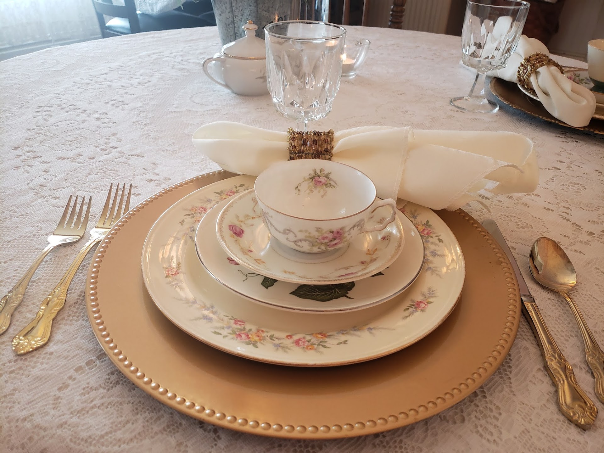 First impressions: the place is an adorable cottage style home. I was concerned about the safety as walls were literally bulging out. We were placed in a corner area, there were food and dishes from a previous guest at the table next to us. We had water at our table but no glasses. 1st host was friendly, but did not give us any information about the place, just let us know how to look at tea options.