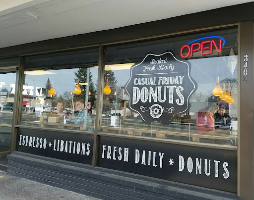Read moreOn the morning of Friday, Jan. 28, 2022, I experienced Casual Friday Donuts in the Spokane Valley for the first time. I went inside to place my order and was assisted by Audrey who was really nice and helpful. Because the old fashioned donut I purchased was small, she added an additional old fashioned donut to our box at no extra charge. In addition to the old fashioned donut I also picked out a maple bar, chocolate sprinkle (called a “Homer” in honor of the Simpsons), apple fritter, and a raised donut filled with a peanut butter-type icing. All donuts have their own prices and my order totaled $14.95.