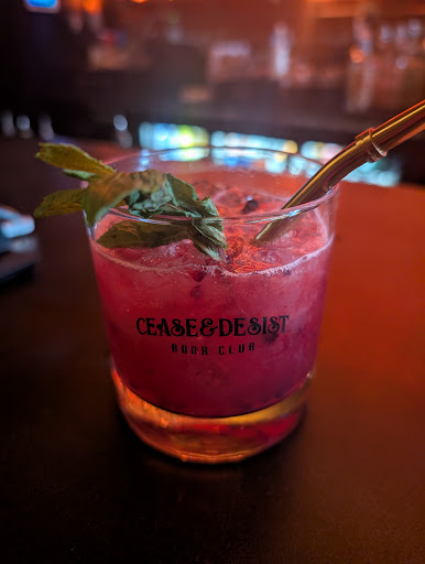 Read moreCease and Desist Book Club offers a unique fusion of literary charm and expertly crafted cocktails, making it a must-visit spot for book lovers and cocktail enthusiasts alike. The ambiance is cozy and inviting, with books lining the shelves and intimate lighting that creates a perfect atmosphere for relaxing evenings. The staff is friendly and knowledgeable, often happy to recommend books or drink pairings to enhance your experience.