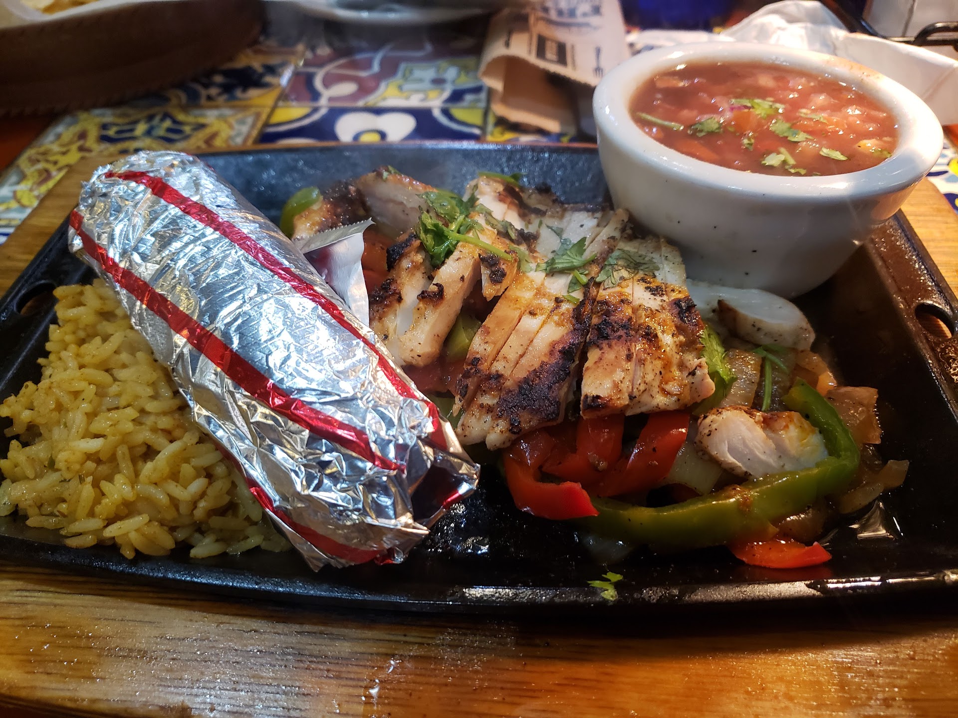 The Soullessly mundane corporate influence lacks the passion that is behind the soul of local non-profit that is answerable to its loyal customer base rather than the control of Wall Street stockholders who lack a personal vision helps by private owners. But the atmosphere was filled with a celebratory exuberance that made it conducive to an effective weekend unwind. The sounds of multiple groups of happy-hour patrons inspired the two of us to enjoy our own evening as well without being forced to restrain conversation and our exuberance to escape disapproval of fellow diners. The unbelievable soothing but electrifying mood in the restaurant COMPLETELY triumphed over my initial bad mood, creating a much needed diversion against all negativity. We had double Patròn shots, frozen margaritas and tropical tasting cocktail reminiscent of the classic Mai Tai and the legendary Sex on the beach. We shared the huge trio (of steak, chicken & shrimp) fajita pan for-2 among ourselves, w/ both corn and...