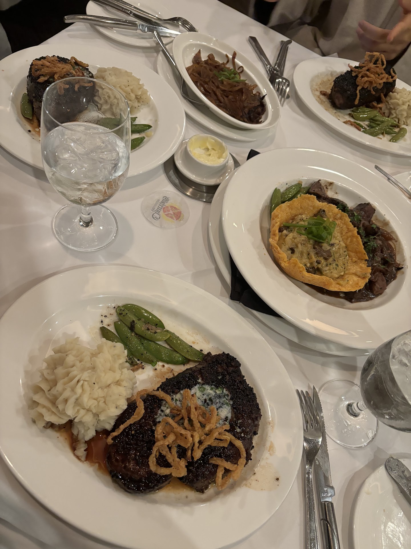 Update: I’m blown away. Bill the owner personally called me after seeing my review. He was sincerely apologetic for the experience we endured last night. He even asked me to wish my fiancé a happy birthday on his behalf. Without even asking he offered to refund our entire meal from yesterday. For me it wasn’t the money it was the value and lack of service. Bill did explain why they have the crusted tops. Has to do with them using an infrared boiler. He said ordering my steak medium rare shouldn’t have been crusted like I explained. He also apologized for the host comment but explained it was a misunderstanding. The table top was smaller at our booth than most booths. Just an owner taking the time to find out what happened and to make it right says a lot. I did tell Bill I wouldn’t mind trying them again but wouldn’t order the steak. Thanks Bill for caring about your clientele wish more owners...