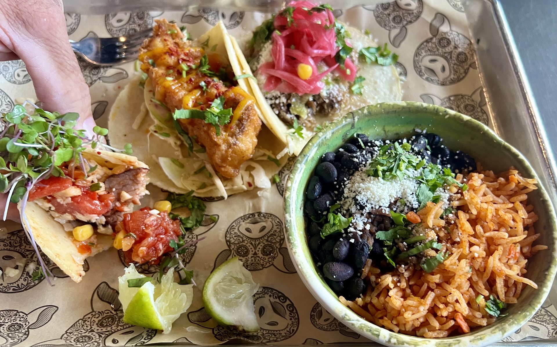 The first turn off was ordering food and drinks at the bar and being directed to find your own seat. This works for some people in our modern age, but I was expecting charismatic servers with peak salesmanship. There is neither of that to be found here. The second turn off was looking at the back kitchen and it was so white washed it might as well have been a PTA meeting in South Hill. We knew we were screwed from that very moment. We ordered 5 different types of tacos and they were beyond abysmal. There were âinterestingâ ingredients like goat cheese, ricotta cheese, sprouts, quick pickled onions, nasty tomato sauce on the carne asada, and for some reason the Spanish rice had shredded carrots in it, filler? The horchata was a gross mix additive that settled to the bottom of the glass. Service was impersonal, tacos were terrible, overall a negative experience. Not what we were expecting in a Mexican food restaurant.