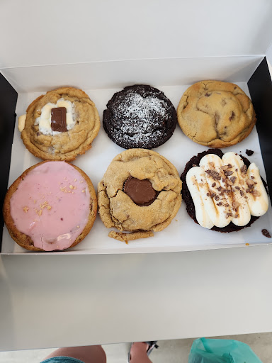 I'm super confused why so many people review cookie places and compline that they are too sweet. They are desserts...they are supposed to be sweet! Go eat a piece of fruit and stop complaining. Who wants to eat a sorta sweet cookie? No one. Also, to give fewer stars for opening day, come on. Were you perfect on your first day of work? Probably not. Give them a break. 2 months in, they should have worked the kinks out. Complain about the line and customer service then. If you don't want to pay $5 for a cookie, and think you can make them yourself, do it, but stop complaining. Oh, and to those that think they are 'raw' in the middle, at least they aren't over cooked and dry like Cookie Co. I'm pretty sure more would prefer a doughy center over a dry one.