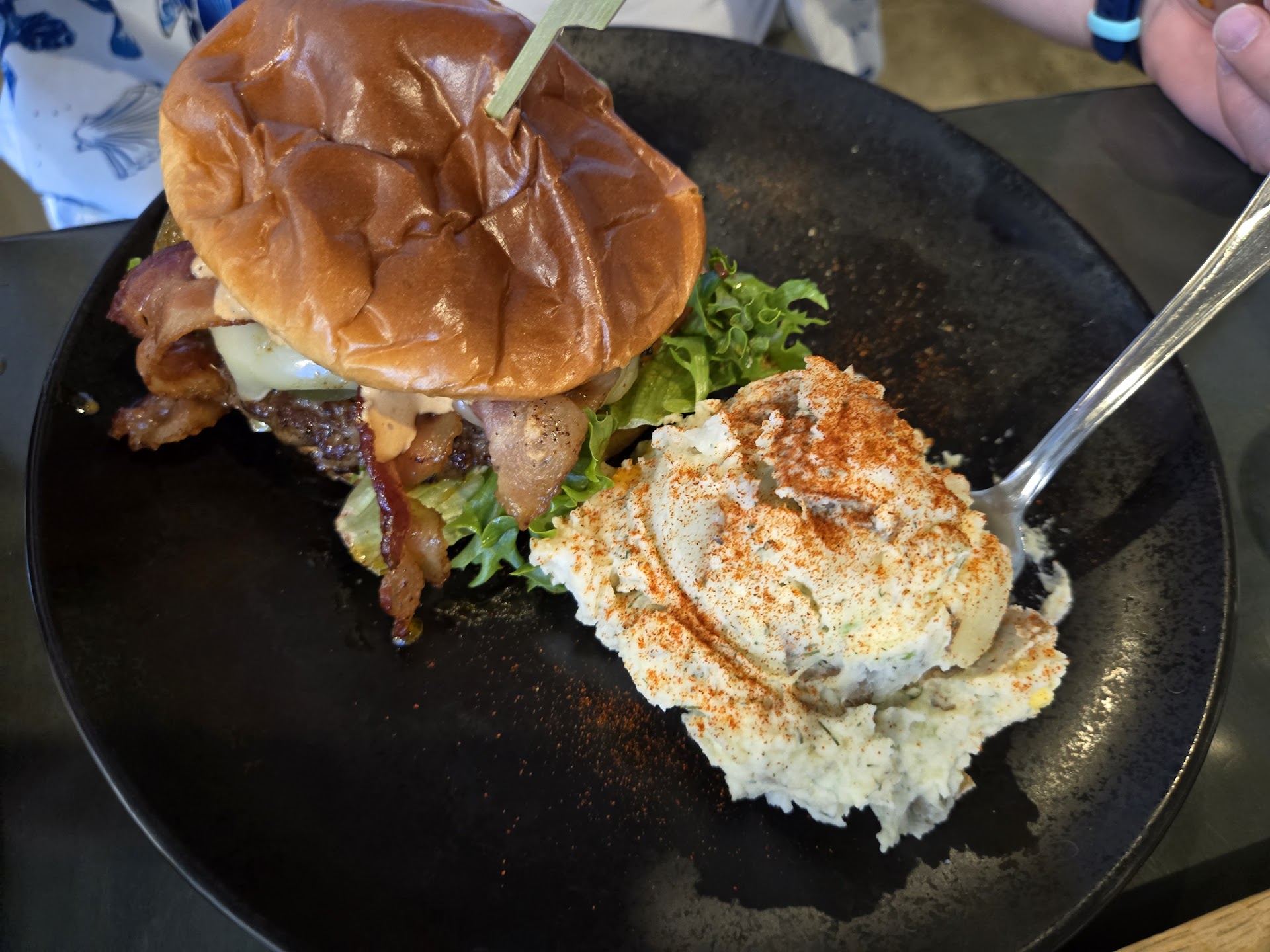 Hit the new Dry Fly location for an early lunch on a business trip to Spokane recently. Super cool and modern interior. Seems like little expense was spared to make the space inviting for visitors. We had a grilled cheese, flatbread, some soup, a flight of whiskey, and a cocktail. Our server was attentive enough and let us alone when we wanted to be alone. There was nice front of house guy or perhaps maybe even a distiller that offered us a tour of the cavernous distillery facility, but we didn't want to be a bother and had other stuff to discuss. The cocktail was nice and it was cool to try the different whiskeys side by side, sensory stuff is nerdy and fun. We had all the whiskeys available, but I enjoyed the big cask strength and the port finished, but the simple triticale whiskey was my favorite. Good merch gift shop, I picked up one each of the premixed cocktails for the wife back home.
