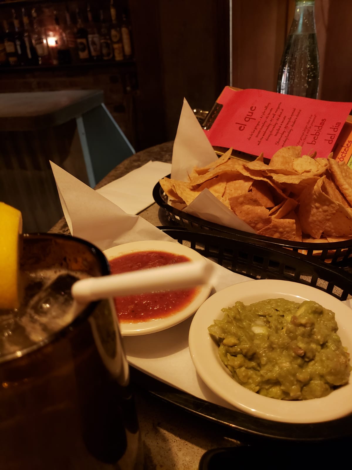 4th mistake was food... the serve was very quick to get away from the table. We had to ask if we could order, she didnt ask if we wanted to. The chips taste like the $2 bags you find at any store. And the queso was gritty and flavorless, but was enough to keep the taste of the infused alcohol at bay to finish them.