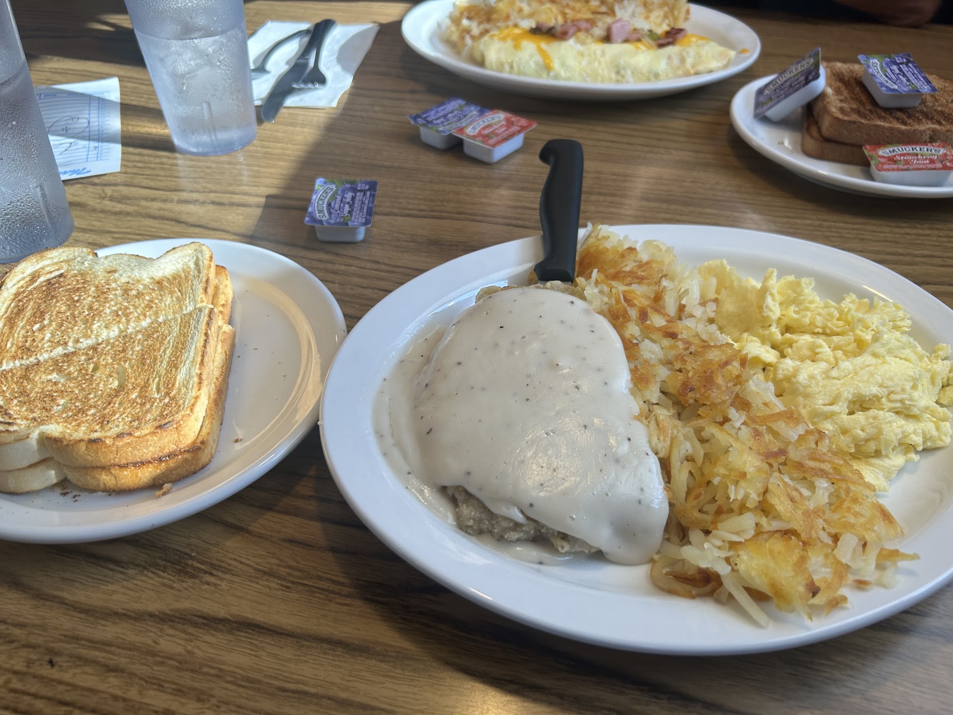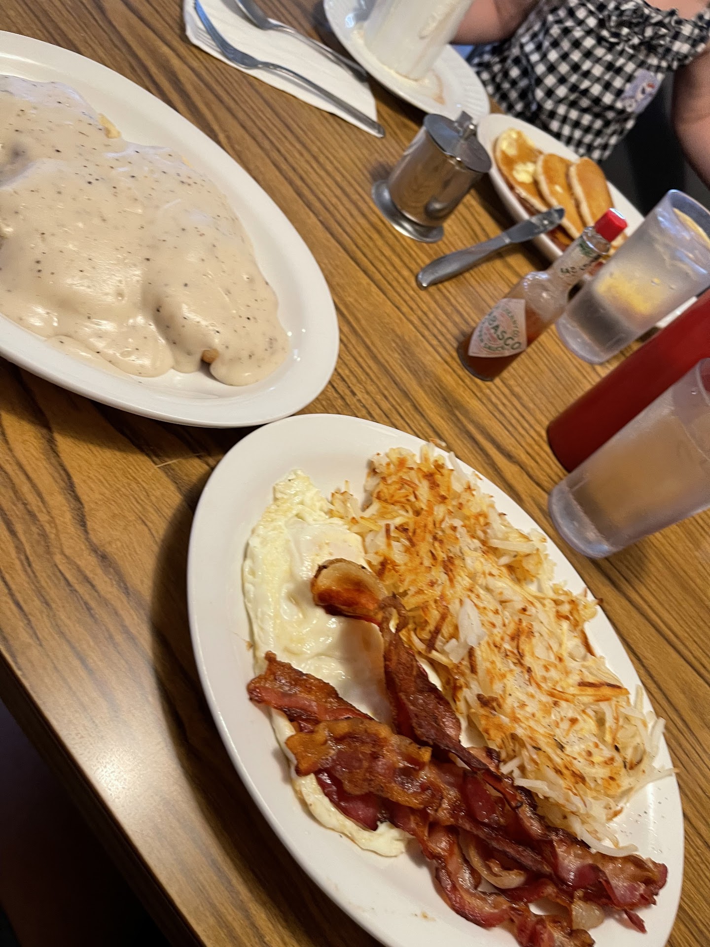 We don’t know the servers name because we didn’t stay, but she was a short gal, straight hair. There was only two of us and we probably could’ve eaten, and been out of there by 1. Today...