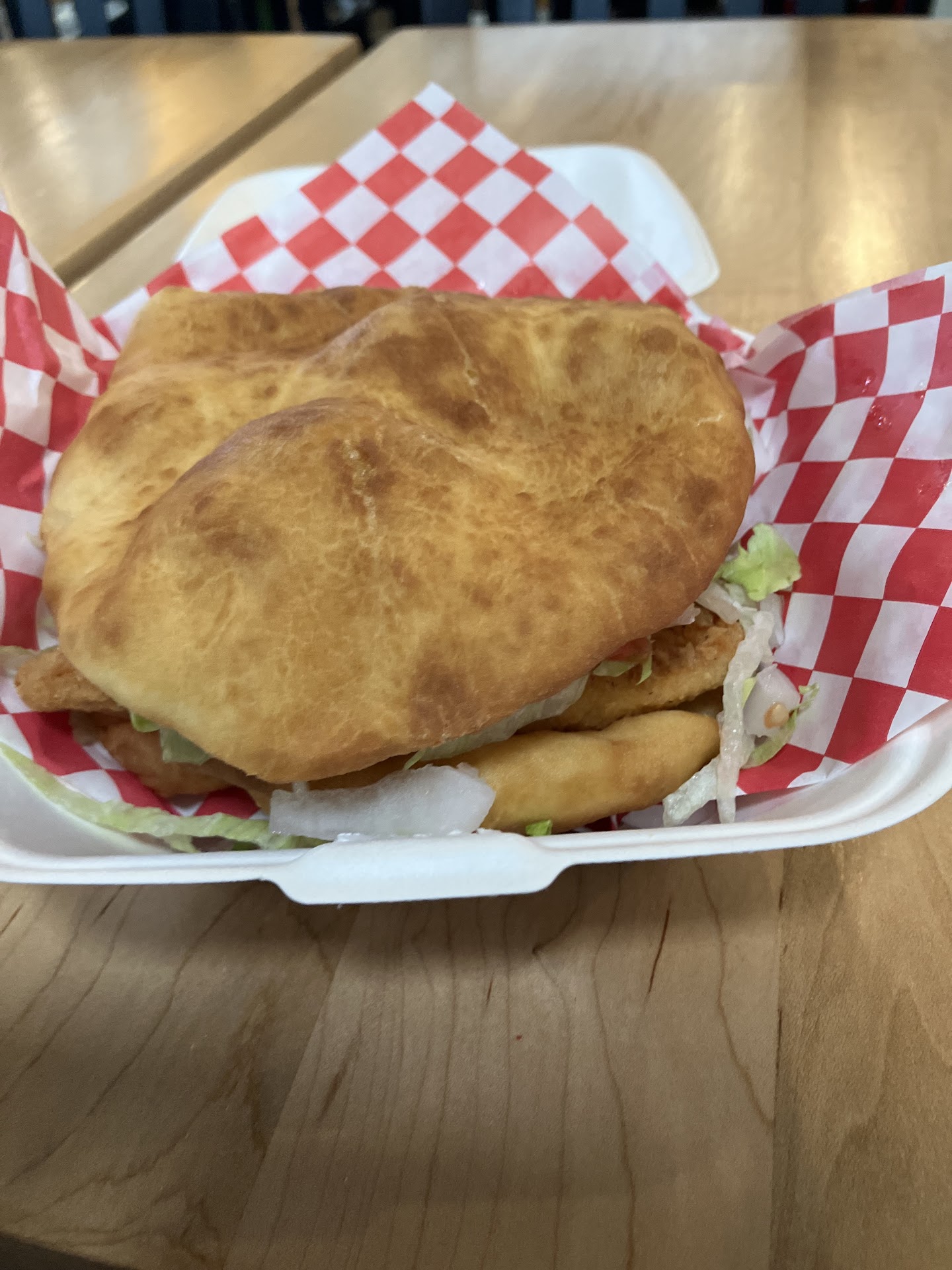 The burger was extremely unique, it was frybread as a burger bun, with the burger meat. But I won't lie i didn't like it. Its not easy to eat because of the frybread bun, and it just doesn't taste good.