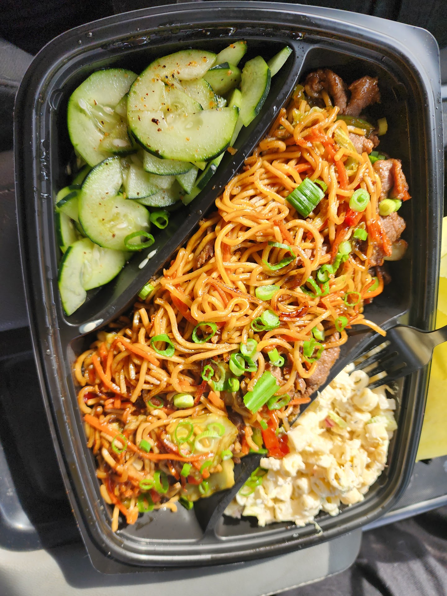 Next up was the Smackin' Sesame Chicken. The rice was, without question, the most perfect rice I’ve ever had—sticky enough to make you wonder how they did it, yet light enough to let the chicken take the spotlight. Speaking of the chicken, it was tender enough to make a grown man tear up a little, bathed in a sauce that had the ideal balance of sweet, savory, and a little something else you can’t quite put your finger on. And that cucumber salad? A refreshing crunch that was the ideal counterpoint to the richness of the dish. It wasn’t just there for garnish—it held its own.