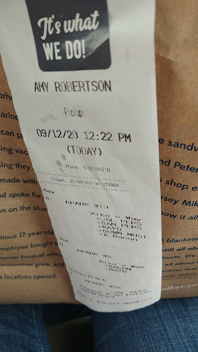 She makes my sandwich a bit later and calls me over to do veggies and such and she asks me “ do you want it the mike way with lettuce, onion, etc ” or something like that.