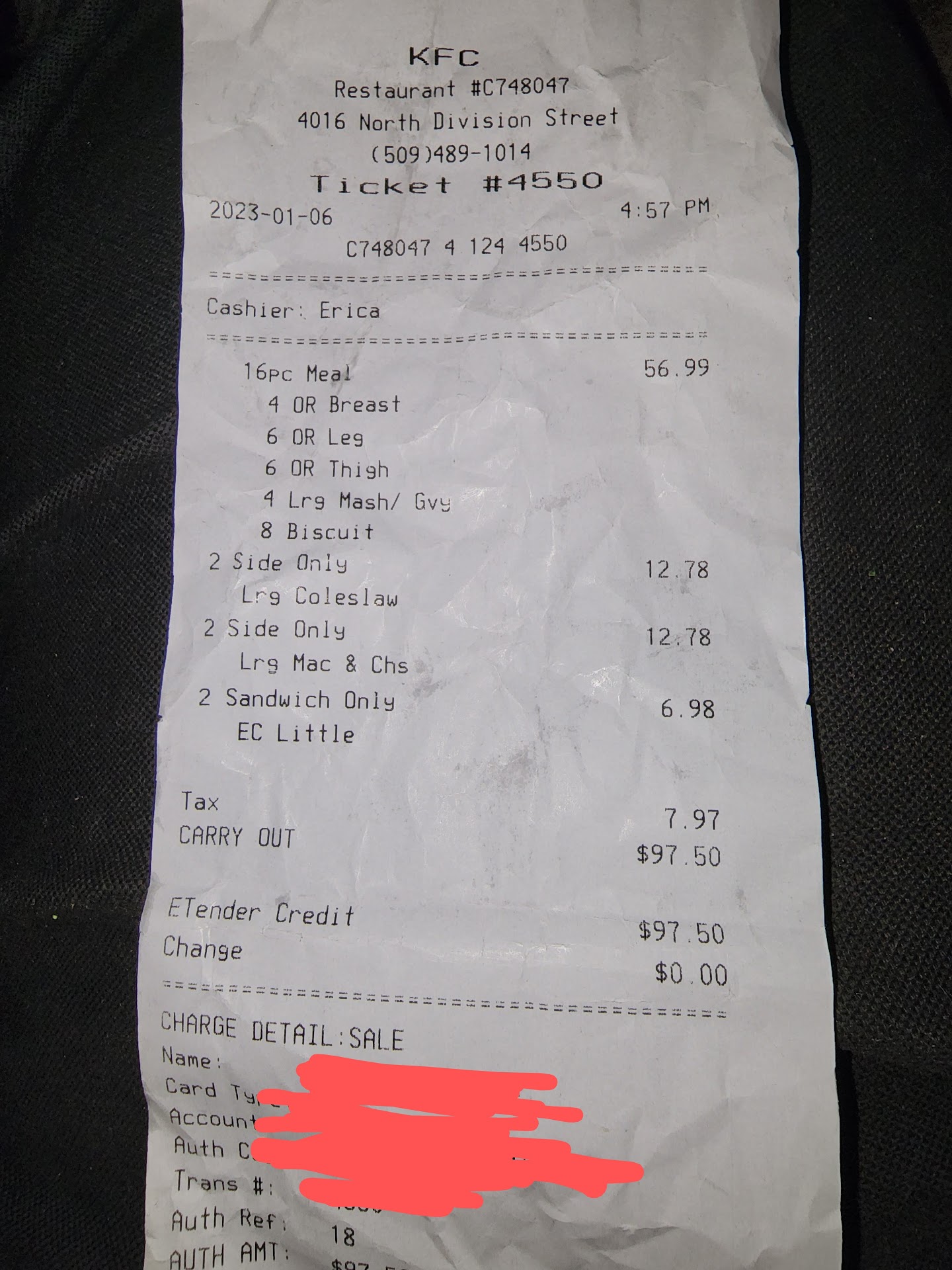 Dylan infused the service with Humor and Welcome! He was prompt and knowledgeable. no hassle no odd questions. Just, Yes Sirs, no maybes. The food was hot and served on trays Not in BOXES. It is the little positive details that make for a GREAT EXPERIENCE. I will be back, and faced with the distance split decision, which KFC? Oh yeah, Go To 4000 block of North Division.