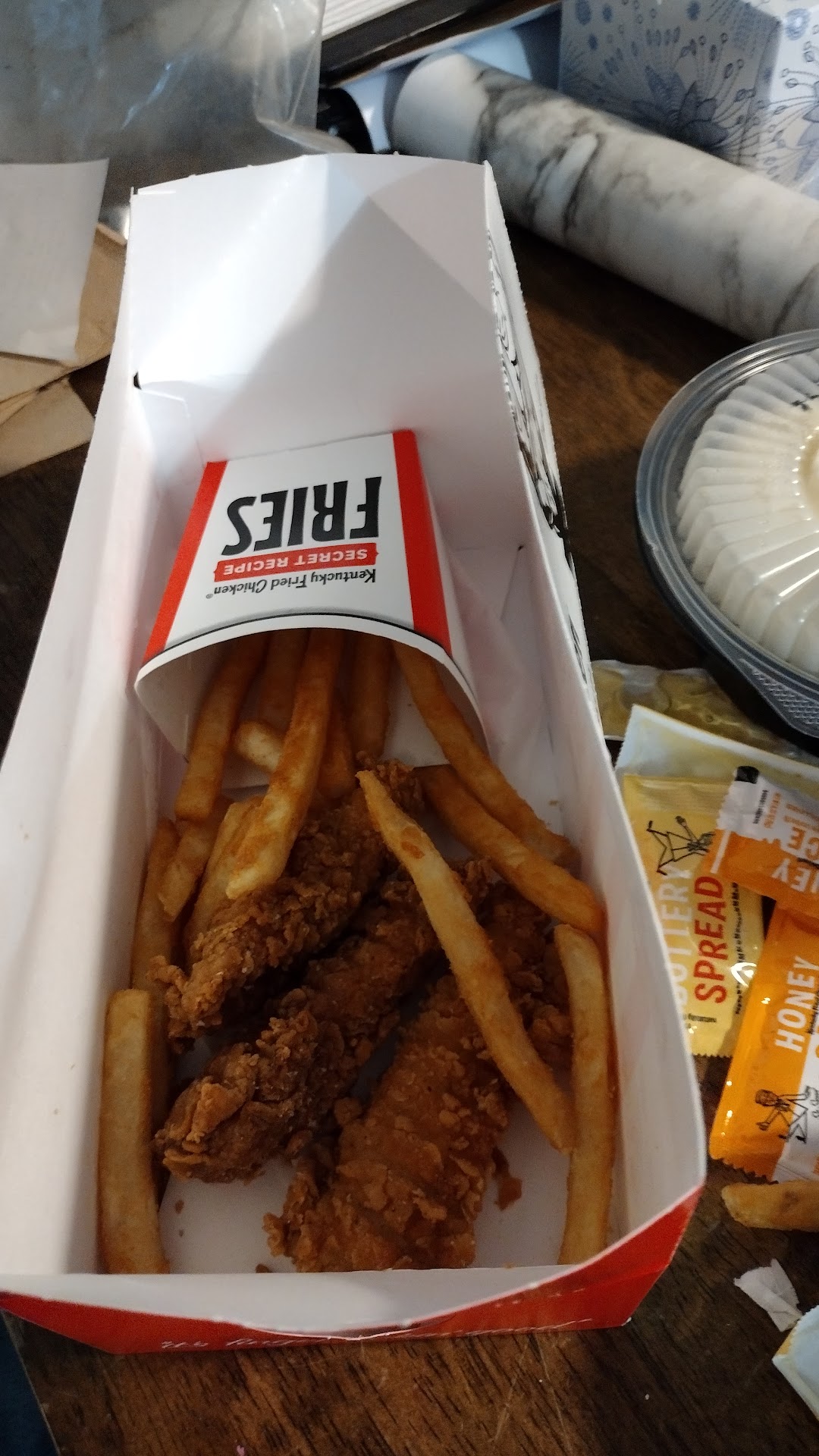 ย ย ย Read moreThe food is always good but their customer service / drive thru needs work. We ordered an extra side of mac'n'cheese through a phone order for pick up. When my husband went through the drive thru he specifically asked if the small mac'n'cheese was in there and the clerk said it was in the bag. Once he got home, no mac'n'cheese. Minor detail, I know, but when you have a kid who will only eat that with their chicken, it's kind of a big deal. That's not the worst part though. Trying to call the store to tell them about their error takes you to corporate in Texas. Every time they patched us through to the store it went to a fax line. For 2 HOURS we tried contacting the store to no avail. We live 30 minutes from town, not worth the hour drive. We are so frustrated. My advice: EVERY TIME YOU GO THROUGH THE DRIVE THRU, DO NOT LEAVE THE WINDOW UNTIL YOU CHECK YOUR ORDER! This has happened multiple times at this KFC. I don't care how busy they are, I'm going to check every single time...