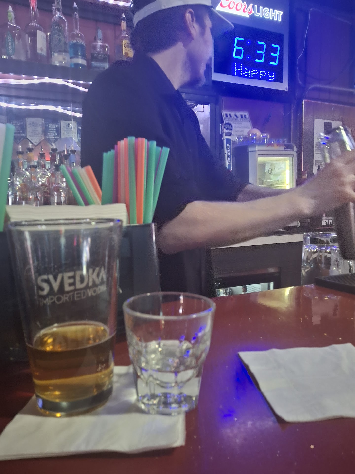 Read moreStopped in mainly to get something to eat... Wasn't sure what to think looking at the place from the outside....but was highly impressed by the quality of the food they make...yes it's bar food....but you get what you pay for...big burgers... great onion rings, superb mozzarella sticks... and lots more! I found out everything is made fresh to order... and all the sauces etc...are homemade right there in house. I also noticed excellent customer service!! Very impressed by the efficient multi tasking done by our bartender. She was fantastic...we will definitely recommend to others and go back ourselves.... Only alcohol I had was a beer, so I'm looking forward to trying...