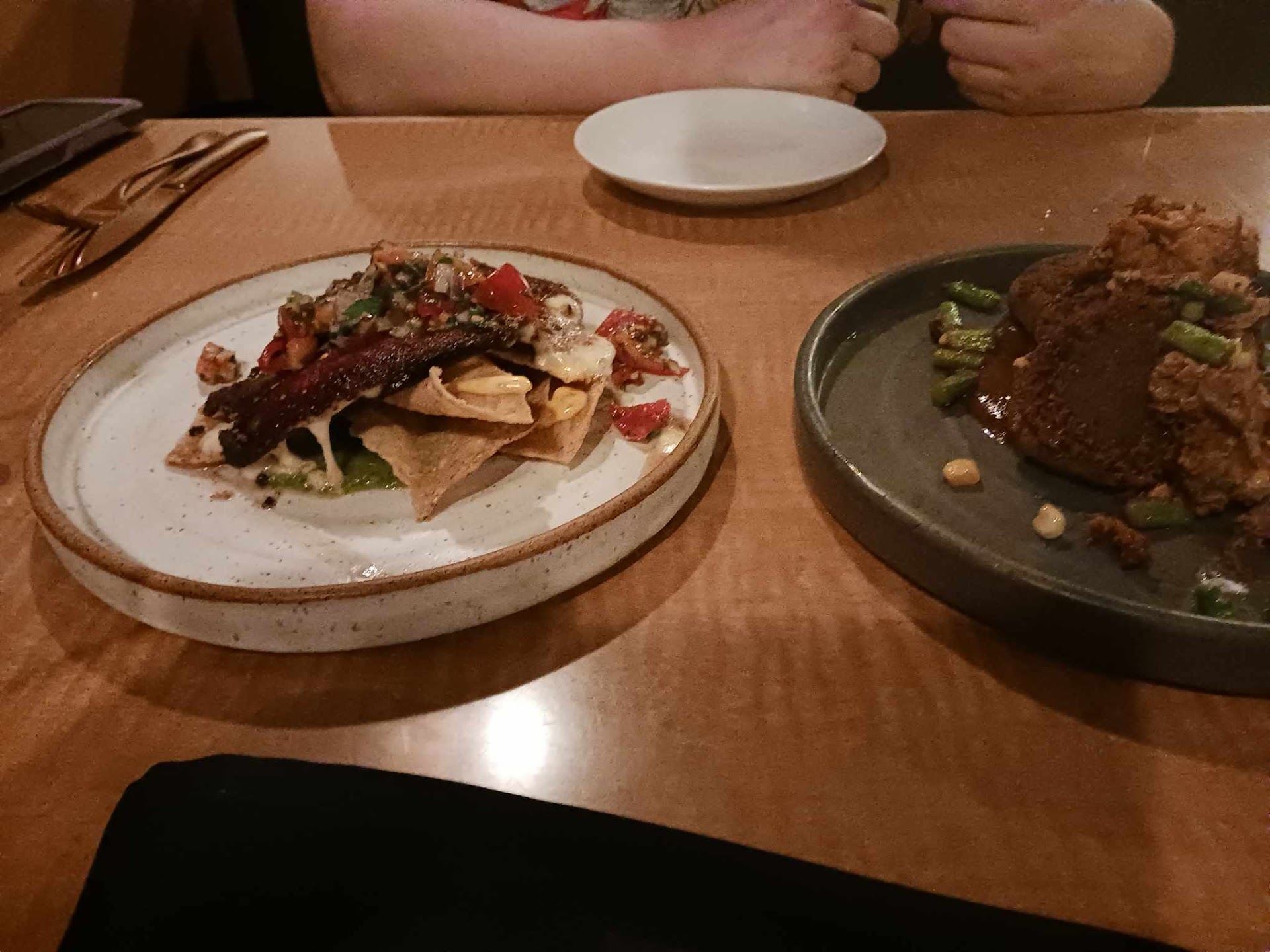 We still thought the food was going to be good tho, lol. So we ordered 2 appetizers, the Arepo cakes with pork and the grilled queso, ($16 for 3 tiny mushy corn cakes, and $13 for a round grilled cheese piece that was probably the best part of the meal albeit way too small for the price. Neither of us even wanted to finish the mushy corn cakes they were just 🤮)