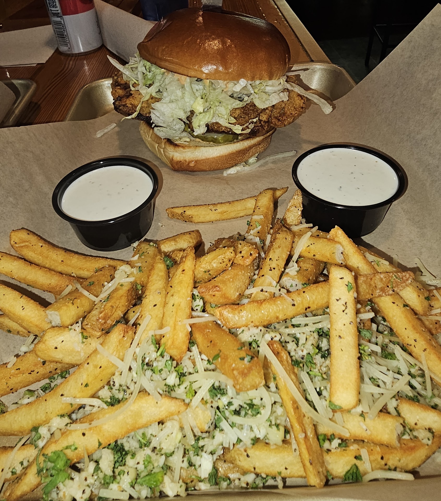 Read moreCame in for a few beers, a game of pool and some dinner. The place was semi packed, but our bartender was great with service. The draft beer selection was not very good, and left a lot to be desired. Because if this, I went with the special and got a corona, and immediately remembered how much I don't care for it. We tried to play pool, but the cue sticks had absolutely no tips left on them. We asked if they had any spares, and they didn't. Was really excited to have this be a place to play, but definitely won't be back for the lack of detail to the bar games. The pickle fries were amazing, the chicken sandwich was too heavy on the breading, but the brioche bun was a great addition. The sweet potato tots were a hit, while the garlic fries were kind of a miss. Overall, there are better places in town, feel this is more of a...