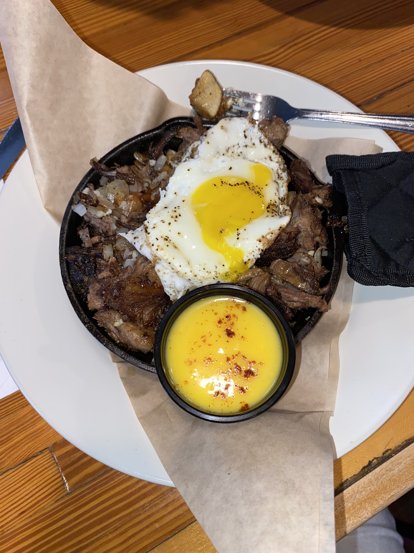 I ordered the brisket hash with a side of hollandaise sauce. It was good. There was plenty of brisket, and big chunks of it as well. I do wish that there was more seasoning, on the brisket and the overall dish. I think if the brisket itself was more juicy it would add a lot more flavor to the dish itself.