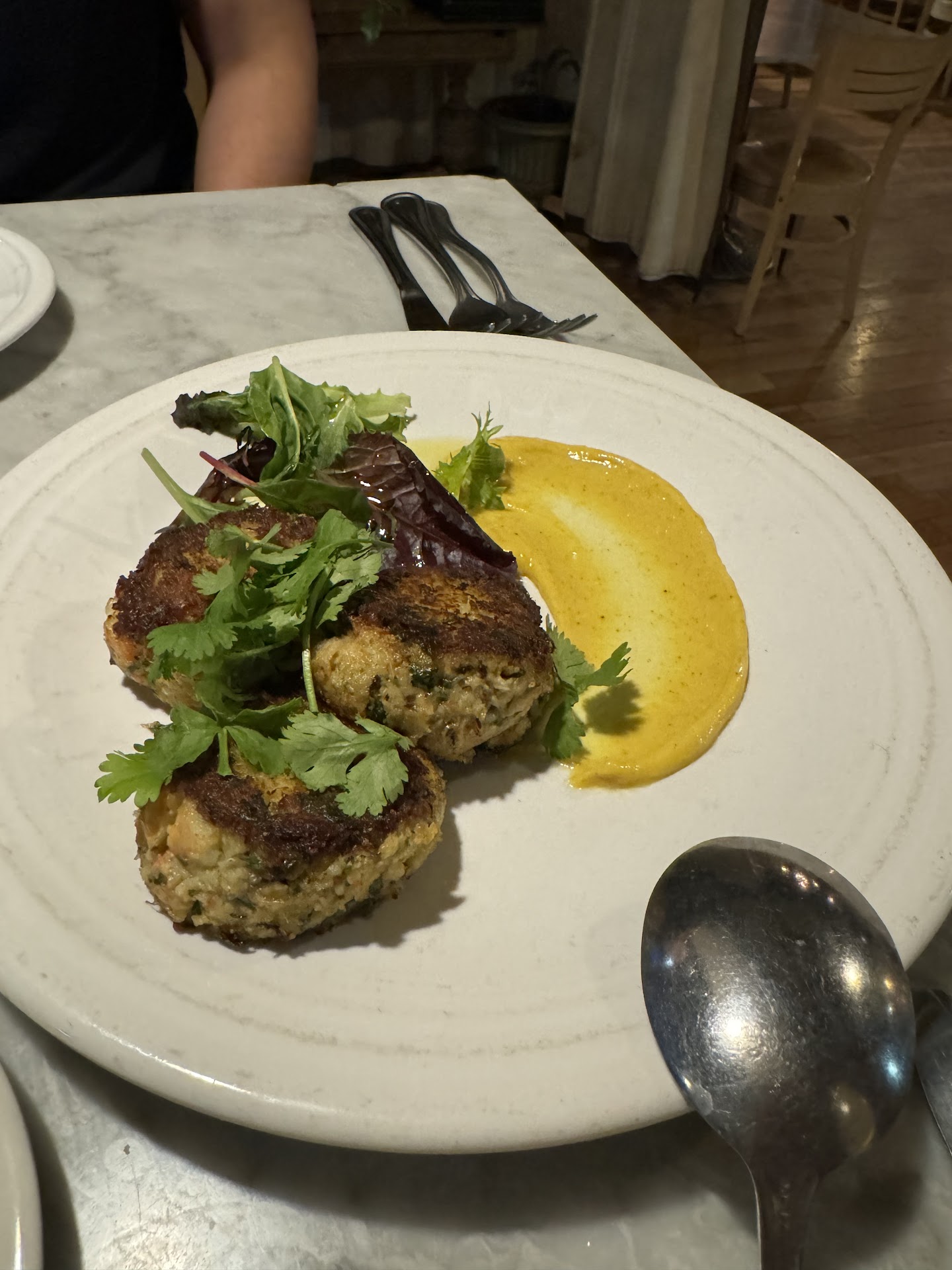 Everyone in the group ordered different items. A couple of people ordered the duck special, the scallops, and the salmon. One ordered the salad and returned it because there wasn’t enough dressing, and wasn’t satisfied with the quality of the salad for the price. They all said their food was just okay.