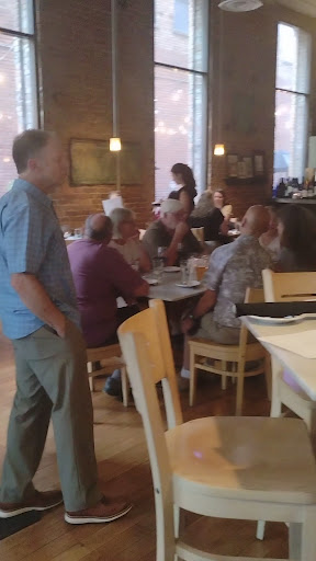Honestly, for the first 20-25 minutes I spent there with minimal service, excluding a glass of lemon water, I felt almost completely unnoticeable to anyone working that evening. But eventually my waitress, who was very apologetic she was serving patrons both indoors and their outside dining space situated in an alley on the side of the restaurant between another business, came to get my drink and appetizers order and was extremely helpful and made wise suggestions as I had a hard time making decisions concerning the menu. Her service from then on was very attentive, but not in a smothering way. She paced bringing out each course and checking up on me, with impeccable timing. I started with fresh bread and olive oil, black cracked pepper and a tiny amount of balsamic vinaigrette to dip it into..the bread had a crusty outer layer and a warm, flaky, soft texture on the inside, perfect for soaking it all up. One of the best "complimentary" breads I have been served at any restaurant in a long while. For my appetizer I had the pork belly which not only came served with crostini-like slices but an absolutely delicious sauce for dipping or spreading and sliced apples to go on the side. I was legitimately shocked at just how large it would be and I know now it was most certainly meant to be shared—they were almost the size of bbq ribs and very dense and meaty. I boxed the rest up for later, as I didn't realize until I sampled it that I really didn't want anything that heavy at the time. The seafood fettuccini was INCREDIBLE—the highlight meal of my entire week! I also want to give kudos to the chef who took the time and consideration of the guests by peeling the ENTIRE shrimp shell off and making sure the clams shells were FULLY opened before serving to the patrons, as many establishments do not, and it is very annoying and inconvenient 😩; the scallops were one of the few times I've had it prepared so perfectly as well. I reluctantly ordered the flourless chocolate torte and was surprised how much I liked it and didn't miss the flour one bit! It also had crystallized sugar coated bits of hardened organic ginger pieces that was both unsuspected and highly enjoyable. I had a blackberry mojito and a berry-infused lemonade martini, which like the meal was amazing and not diluted or watered down in any way. The atmosphere consists of an alleyway outdoor dining area with lights hanging overhead, beautifully shining in the evening's waning hours. I def want to sit out there when I return. The inside consisted of two rooms and the entire structure was quality brick and stone work with a fusion of Edwardian chic and neo-industrial styles, complete with Tiffany-style stained glass and exposed metal...