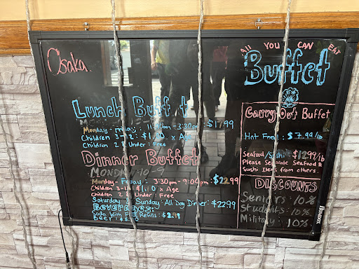 Food was absolutely terrible. Wish I had checked the buffet before I paid. Food looked like it had been sitting out all day. Three people spent about $50/60 dollars to eat seriously dried out veggies/dishes, or broccoli that was grey and absolute mush, Inedible batttered chicken bits that had to have been out for hours it was so nasty and so hard you could barely bite it...shrimp that was literally mush so over cooked, squid that was leather, battered shrimp was hard and disgusting, and that was only some of the food I tasted. Afraid to even try the sushi. Ate four steamed clams, tolerable, and several mushrooms and some hot and spicy soup. Out of the whole buffet those were basically the only things that were semi edible. Wonton soup was also tolerable, but only a few wontons available to add to soup. And then went to get pineapple and peaches for dessert...they had obviously been out for hours too...very little flavor and peaches were hard...prob also been out all day. And that's not counting the food that was not available or so low that there was barely anything but a little bit of hard gloopy sauced foods. Or the two chicken skewers that were clearly dried out and had been sitting out for a long time. And to add to it several of the dishes had dried on food bits, and one we found a hair on! I'm seriously hoping that we don't get food poisoning...especially since I focused on seafood... kudos to anyone who might have been able to get their money back. We were so disgusted and tired at that time (about 8 pm) we just left. And also the whole time we were there maybe two or three other groups showed up. This restaurant should be closed down! I do not write reviews based on one bad experience...and always try to give a restaurant the benefit of the doubt especially in this time when it is hard to find workers and after Covid and everything....but this was so terribly bad I feel other people...