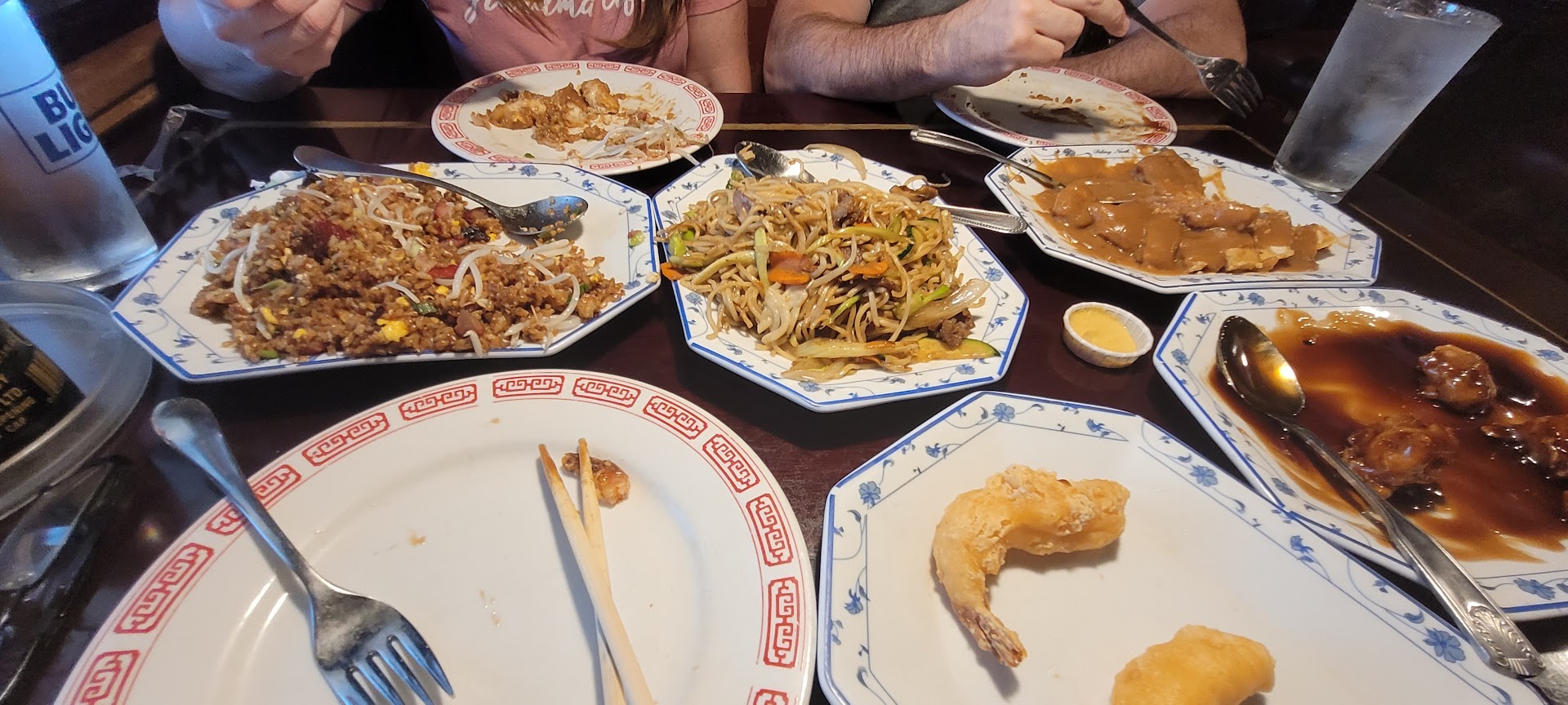 We were here on Tuesday evening to celebrate my sister's birthday. What seemed like the ONLY wait staff on hand, appeared irritated that we came in with flowers & balloons. When she did come to take our order, she was not friendly at all. You should not work with the public if you cannot make your customers feel welcomed & happy to be there. When I asked my sister if she wanted an alcoholic drink, we were told that there is no one in the bar on Tuesday's & 1 other day. Had we known that, we would have gone to another Chinese restaurant in the area. But, we ordered our drinks & appetizer. It took us asking her FOUR times just to bring my iced tea.(Which literally just tasted like colored water) The food itself was pretty good. No complaints there. But sadly, the service we received was awful. I would completely understand if the place was slammed busy with only one or two wait staff, due to covid. But there were only 2 other tables being served in the entire restaurant. I have gone to this restaurant off & on since I was a very small child, with our parents taking us as kids. I remember it being SUCH a nice place to go! Now, it is so rundown, unclean. There were cobwebs on the light above our table! And the eye appeal from outside, well, it's just plain ugly. There is absolutely zero upkeep inside & out. We all agreed that we...