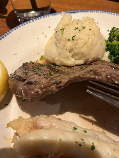 Read moreI walked in about 5 minutes before my wife arrived and asked for a table. It was 5 pm and the place was essentially empty. The polite girl marked a table in the restaurant and grabbed a couple of menus, when a male with a funny mustache rushed up, intercepted us, and asked if anyone in my party was under 21. I replied no, and he changed our table assignment and started walking toward the bar. I asked "why are you putting us in the bar?", but he didn't reply. When we got to the table I asked again and his reply was that this was a "section", and all sections are "onortation". I didn't understand him, and asked again and got the same response. Completely puzzled, I asked a third time and he spoke very slowly this time as if speaking to a small child, explaining that he was "level loading" all of his servers throughout the restaurant and including this "section" in the bar on a "continuous rotation". Ah! I said, ok I know THAT word. Basically, even though the place was essentially deserted, he was sticking me in the bar so that his servers all got an equal piece of the pie for that evening. So that was it, above my numerous objections he was seating me where it was best for HIS people, and not at all what the customer wanted. After a few more tense moments, he asked if I should be reseated. Now clearly understanding I would be upsetting his precious "rotation", I declined. I never saw him again that evening. My wife walked in shortly after that. Guess what her first question was. "Why are we in the bar?" I replied, "don't ask". The food was just ok. Our server forgot to bring additional biscuits after HE offered them. My dinner arrived without the broccoli, and the server blamed it on the chef and said it would be right out. A few minutes later it arrived, cold. I mean, I put a pat of butter on it, and it didn't even melt. I don't think the chef forgot to cook it, I think the server forgot to bring it out and it just sat there getting cold. Like I said, just ok, and probably not worth the hundred bucks I eventually shelled out. As a bonus for the evening, our table in this particular "section" was directly adjacent to the employee rest area, so we were enthralled to hear all the loud joking and laughing and flirting with the bartender and stories about who's dating who and on and on. Suffice to say that neither one of us will be rushing back to this Red Lobster...