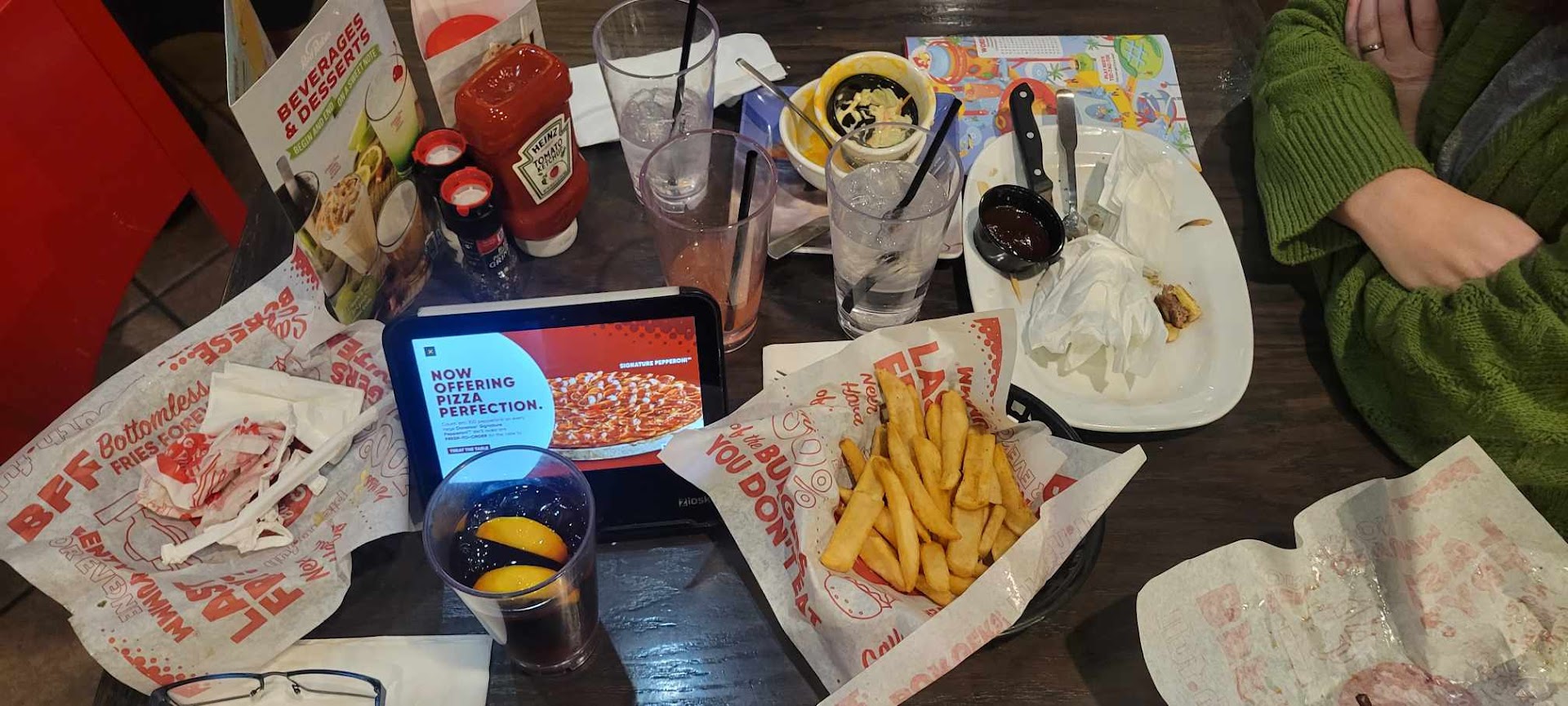 I sincerely wish that I had a better review of this restaurant. First, let's note that it was a very busy evening which we normally experience in February due to the enormous amount of birthdays in the Inland Northwest take place at this time. Our family of three was seated relatively quickly so there was no massive wait and we were thankful for this. Our server was prompt to our table but did give us enough time to survey the menu prior to her arrival. We ordered our drinks and food at the same time knowing wait times can be longer when busy. We watched other servers very attentive to their tables but did not see our server until much later at this point our drinks were in need of refills and our daughter needed an additional mac and cheese. When our server did visit our table, and my husband shared with her that we had placed additional fry and mac and cheese orders with the individual who brought us our food. For some reason this seemed to upset her we didn't notice it in the moment but we noticed it in the fact that we were completely ignored the rest of the evening. We were visiting because of a birthday month for one of us in our household but we're completely ignored even after asking how to at the birthday reward to our bill. My daughter was upset because she really enjoys the ice cream sundae that comes with the reward since she is too young to earn one herself we generally allow her to have ours. Our server seem to be more upset that we were getting help from management which we did not ask for she just happened to come by our table when my husband was trying to have the reward added to our bill. We Believe she thinks that we complained about her which we did not however her attitude towards us throughout our time there was unacceptable and has made us think twice about even using our next birthday reward there. This saddens me as it's a great place for us to have a relatively decent dinner with our daughter. I also wish this was the first time I had had a bad experience but I can honestly say the downtown location and the northside location are both burnt for our family. Maybe another day but with so many other good dining options it's likely will pass. Photo reflex our table being completely covered in items to be removed that we were left with even when our server ignored us several...