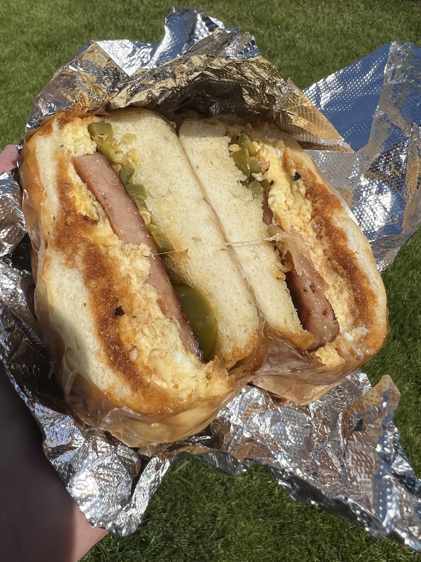 Has a sandwich is this town ever made you cry? I shed one very masculine tough guy tear while absolutely devouring this Musubi Sandwich from Sandos. Was it the fresh made bread, that had me remebering the good ole days? Was it the perfectly cooked egg and melty cheese that had me thinking about winning the limbo at roller valley in 1995? Was Is it the Jalepeno and amazing sauce that had me reminiscing about my undeafeated jv basketball seasons at Evergreen jr high? Naw it was the finest damn grilled spam that has ever graced my lips combined with all those flavors that had me shed a tear for the homies. If you have not had this sandwich yet do not hesitate to have it for breakfast lunch or early dinner its a real game changer 10/10 stars fat kid approved 💯 (heavy breathing video left...