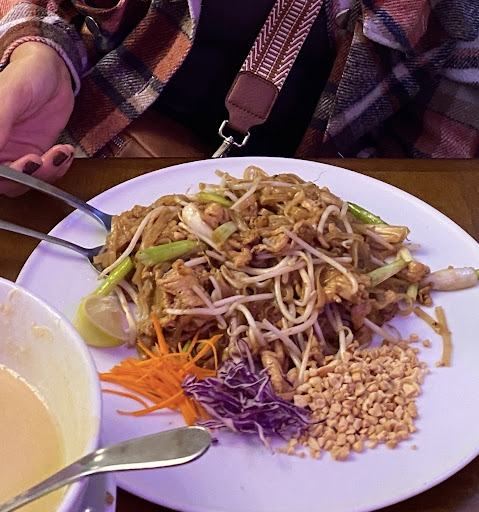 My partner and I split the chicken phad Thai and green curry with tofu. She started with the curry but was halted from hurry do to the high heat with which the meatless meal did her meet. I, however, was numerous noodles down before I could take a breath to ask how was her curry.