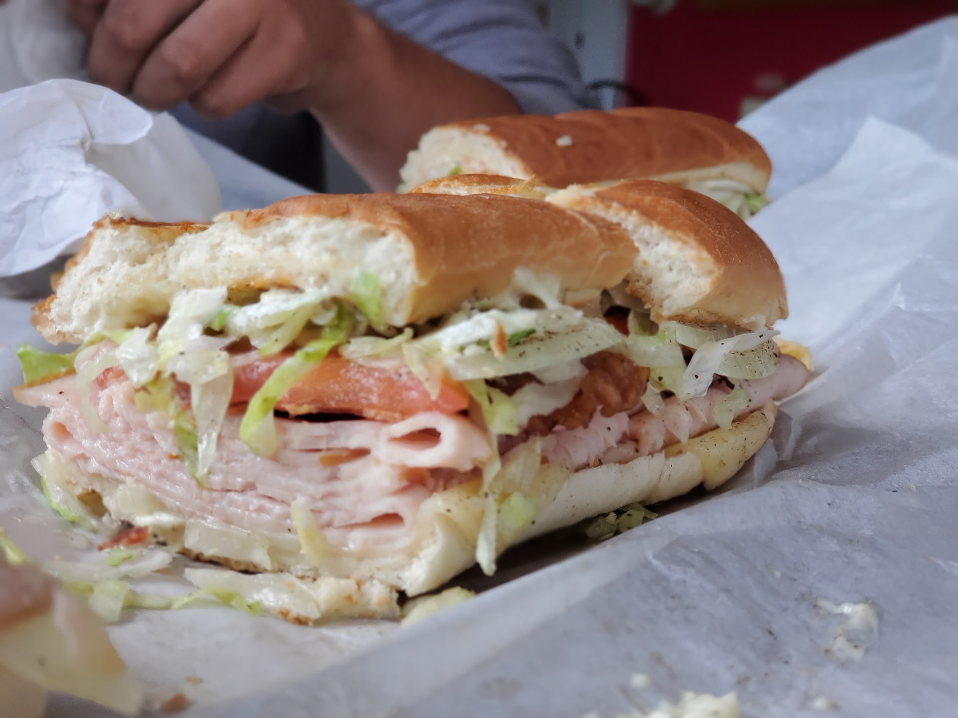 The pros: The size is pretty good, definitely two thirds bigger than Jimmy John's turds. They screwed up on an order so they comped us a full sandwich instead of a half.