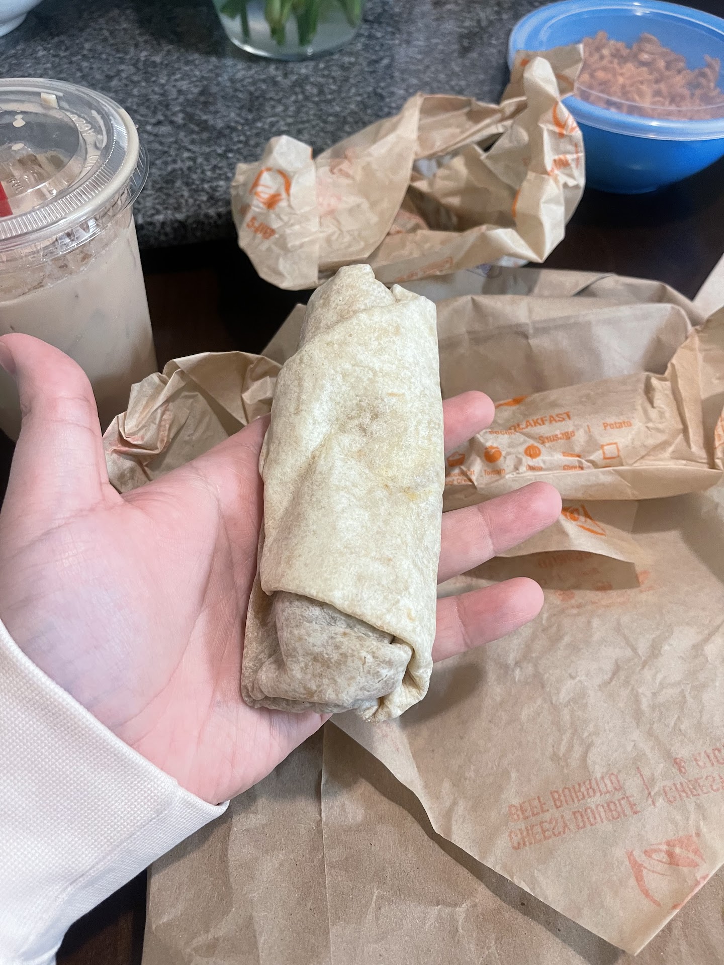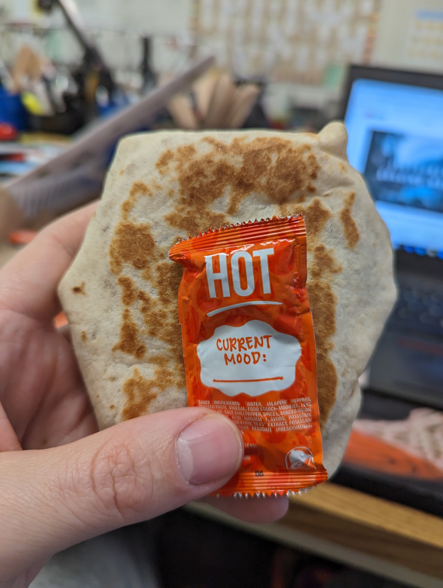 When my food arrived, it of course had no sauce. And you could blatantly see that it wasn't fresh either. It was even cold. The cheese no longer melted. Yes, I know it's winter time. But Taco Bell is only 3 blocks away and had the food been sufficiently warm when it was originally made and given to my husband, then there's absolutely no way it could have become barely luke warm traveling in a car for only 3 blocks. I didn't even eat it. Even the cinnabon bites were not warm! I support fast food workers, customer service isn't easy even if the job itself is. However, this was just a plain lack of concern and no willingness to go the (not even extra!) Full mile. So what did I pay for?
