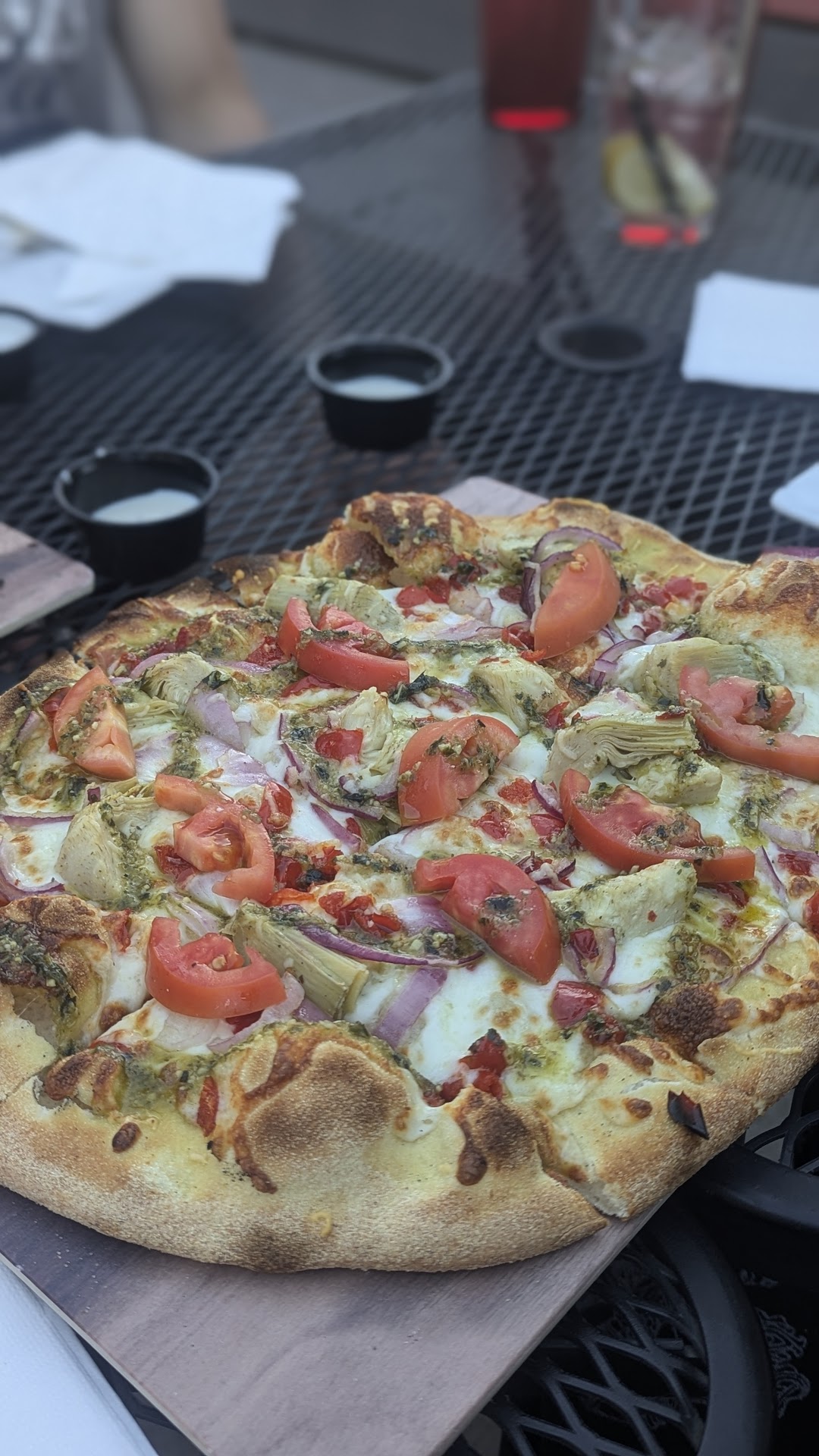 So this is advertised as a place to get good craft beer and good brick oven pizza. They have ten tap handles (I think that's correct), and when my husband and I went on January 11, there was a light beer (Coors or maybe Bud), Peroni, four IPAs, and four winter beers. Only a couple were from local breweries. We were hoping for a better, more local offering. About 15 kind of generic bottle/can beers. We didn't have cocktails, but their specialty offering did look good!!