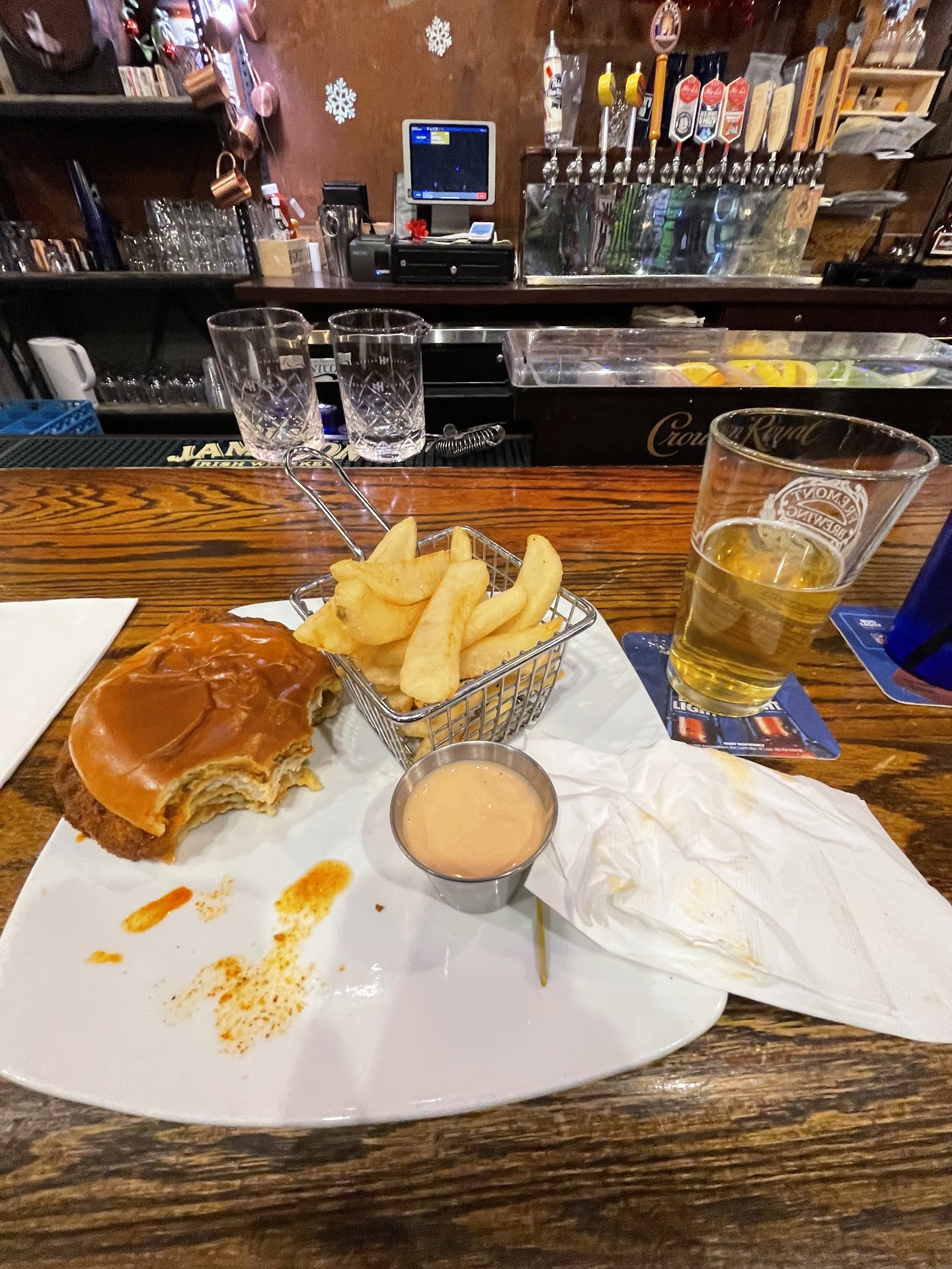 Furthermore, I came in early for dinner before a show. Mens urinal was out of order, and the available toilets had dried vomit on them. The amazing server said they have an employee who cleans the restrooms before the shows, but I guess found a better job.