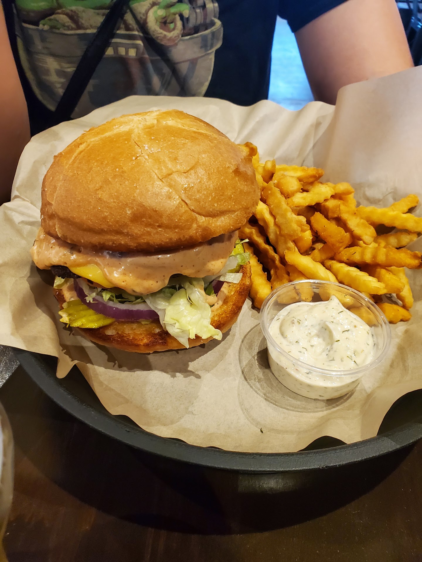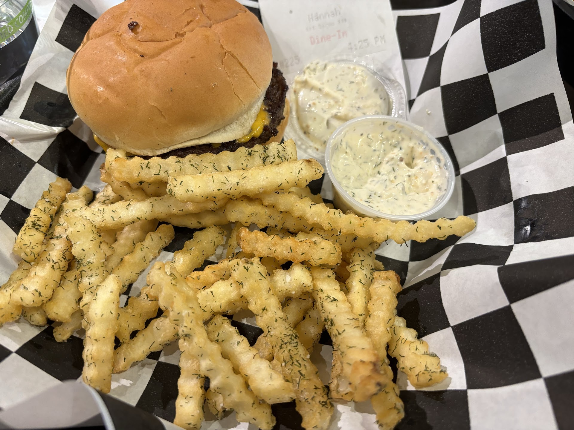 Great atmosphere to take family or to hang and play a game. We were a hit and miss on food. Our smash burgers which three of us had didn't taste or feel anything like a smash burger. Left all of us disappointed. Couldn't taste that the bun was sourdough as it tasted like a dried out regular bun that had sat for far too long. We loved our dill fries! Another member of our party was disappointed with what she thought the dill pickle fried side was, but that was just confusion (they are fries) The line was sooo long. And moving slowly. With two women sitting and going slow and casual before the game which is clearly a busy time. Find some hussle ladies. One can be prepping the drinks first then the other can get the rest of the order and pay. Instead they both stare at you until the order is paid for then start prepping the drinks. No information about what to expect or grab things nor a "have a great night". I'd rather ring myself up on an iPad or app instead of dealing with the awkwardness and line. Good positives, our kids loved their meals, the burgers and chicken strips were plain (we appreciated) and well liked by the kids. We ran out of time to eat as our order took longer than expected so heads up if you come here, it's worth it for seating and atmosphere just give yourself an extra 30-45 for the line and the wait after ordering...